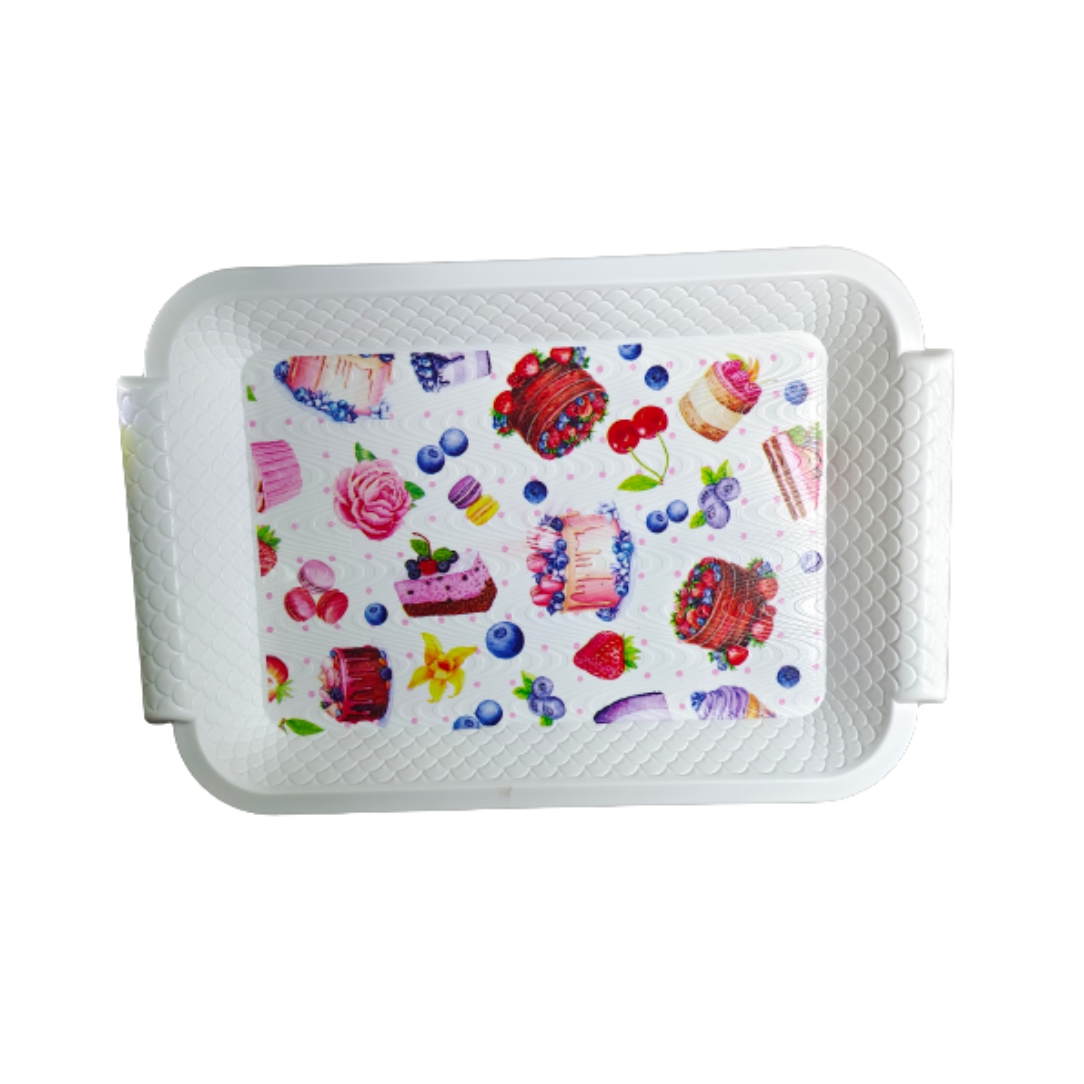 Δίσκος σερβιρίσματος. Κατασκευασμένος από πλαστικό. Είναι κατάλληλος για καθημερινή χρήση. Ιδανικός για να σερβίρετε τους καλεσμένους σας. Διαστάσεις 38x26cm. Η φωτογραφία είναι ενδεικτική, διαθέσιμο με διάφορα σχέδια πάνω, η ποιότητα και η κατασκευή είναι η ίδια.