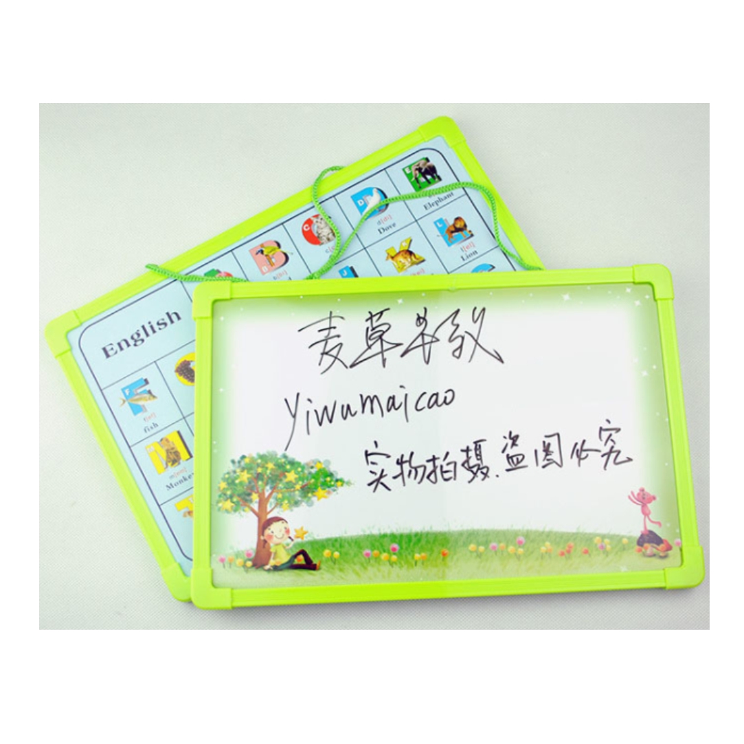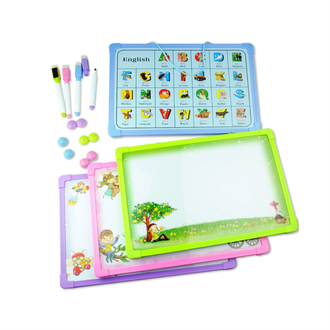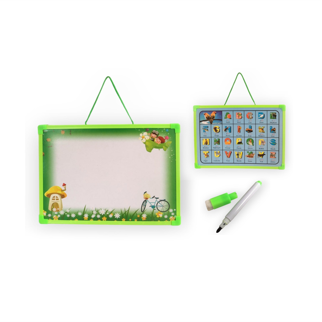 Εκπαιδευτικός πίνακας. Διαθέτει δύο όψης. Στο μπροστά μέρος διαθέτει λευκό πίνακα και μαρκαδόρο για να μπορεί το παιδί να γράφει και το πίσω μέρος διαθέτει την άλφα-βήτα στα αγγλικά. Ιδανικό για την μελέτη των παιδιών στις μικρές τάξης. Διαστάσεις 30x20cm.