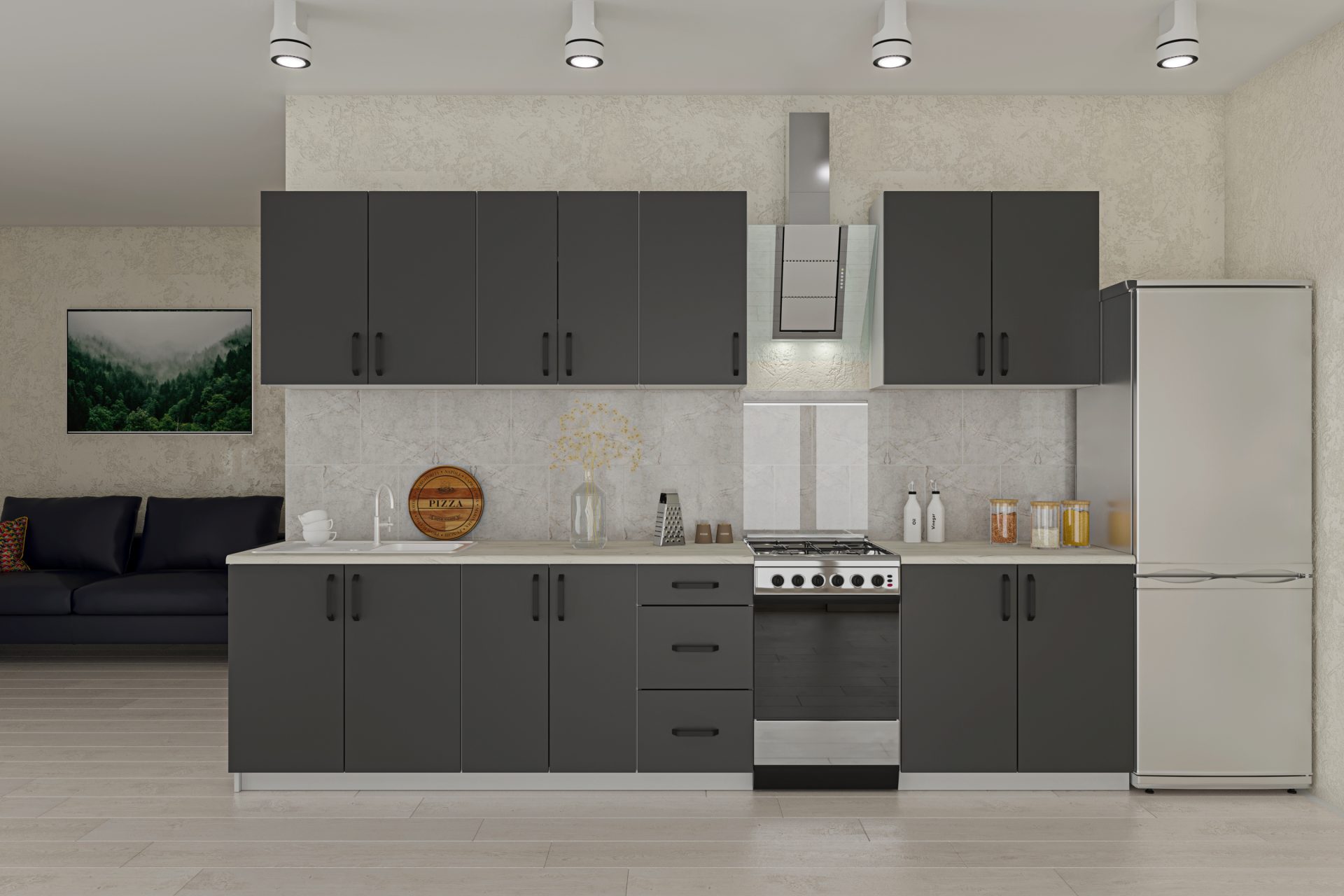 Κουζίνα Liana, Σετ Οχτώ Τεμαχίων, Ευρωπαϊκής Κατασκευής, εξαιρετικής ποιότητας και υψηλής αντοχής, σε ανθρακί απόχρωση.