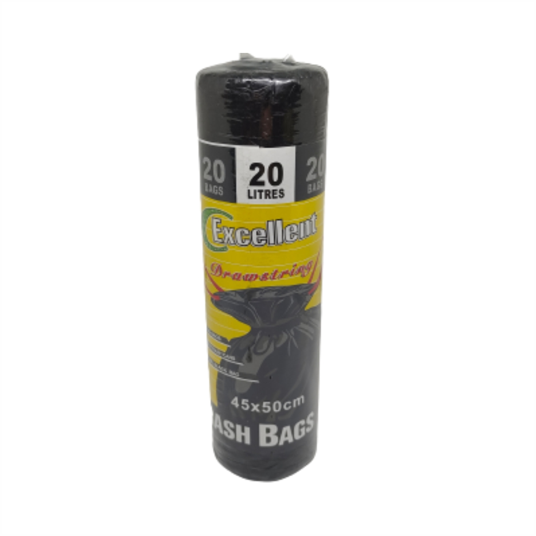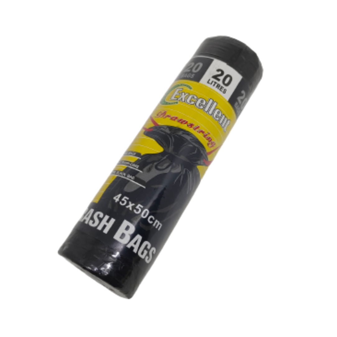 Σακούλες απορριμάτων. Μέγεθος 45x50cm. Η συσκευασία διαθέτει 20 σακούλες. Σε μαύρο χρώμα. Χωρητικότητα 20 λίτρα.