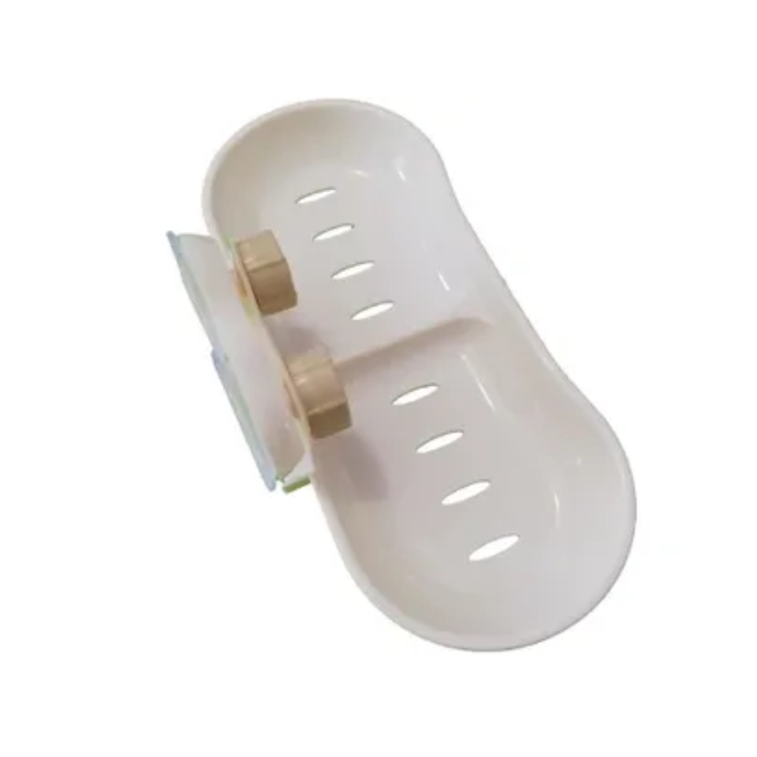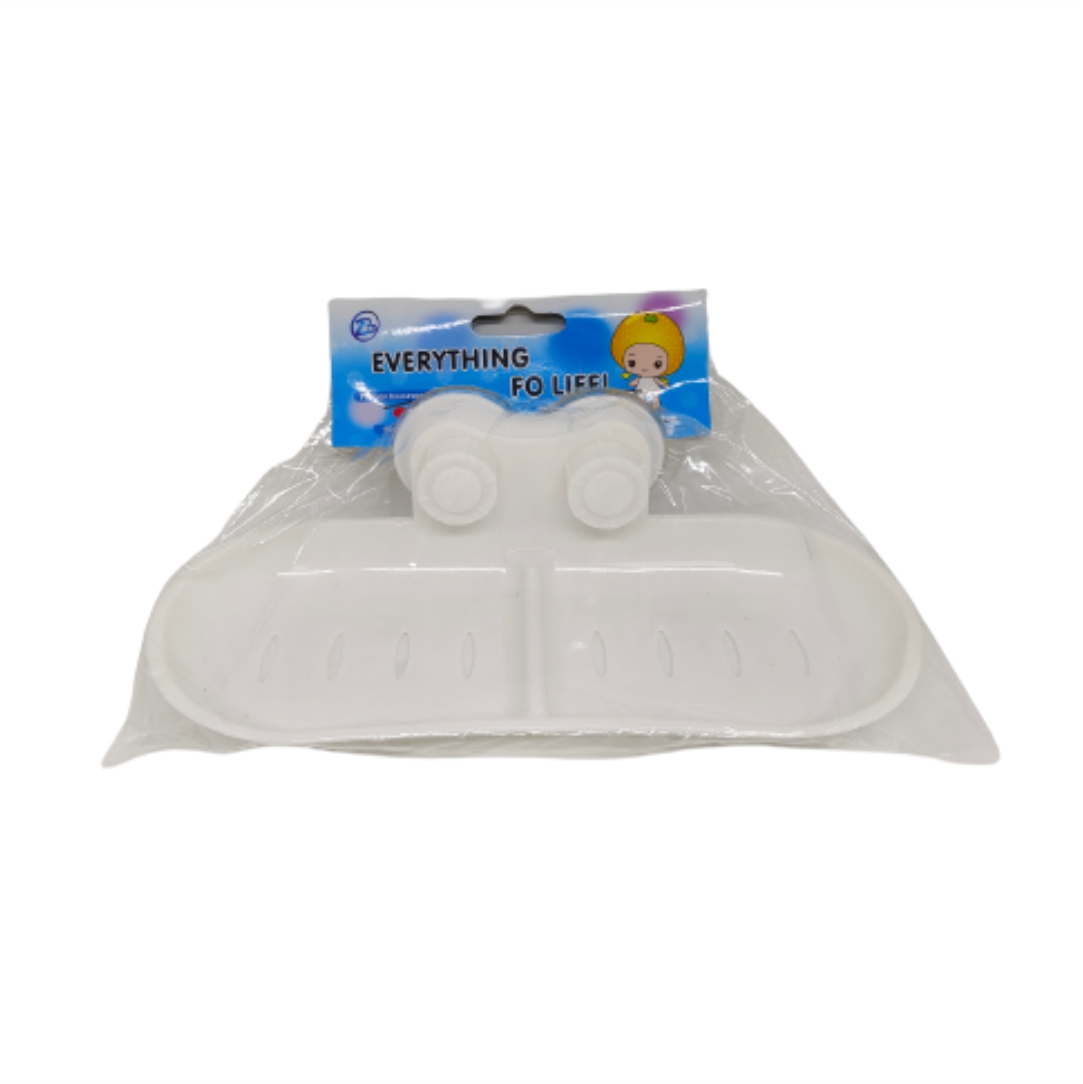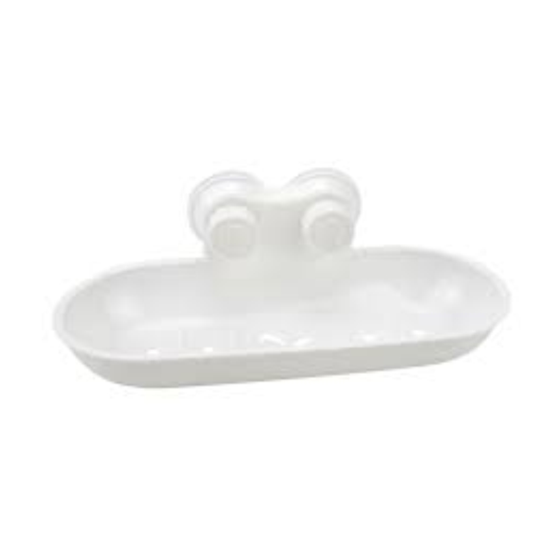 Σαπουνοθήκη μπάνιου. Ιδανικό αξεσουάρ ώστε τοποθετείτε το σαπούνι σας και να είναι προστατευμένο από τα διάφορα βακτήρια που υπάρχουν στο μπάνιο, ενώ παράλληλα θα συμβάλλει στο να αποφευχθούν λεκέδες από σαπούνι στις επιφάνειες του μπάνιου σας. Διαθέτει βεντούζες και έτσι δε θα χρειαστεί να ανοίξετε τρύπες για την τοποθέτηση της, ενώ παράλληλα μπορείτε να την αφαιρείτε και να την μετακινείτε. Κατασκευάζεται από πλαστικό. Διαστάσεις 21x9cm.