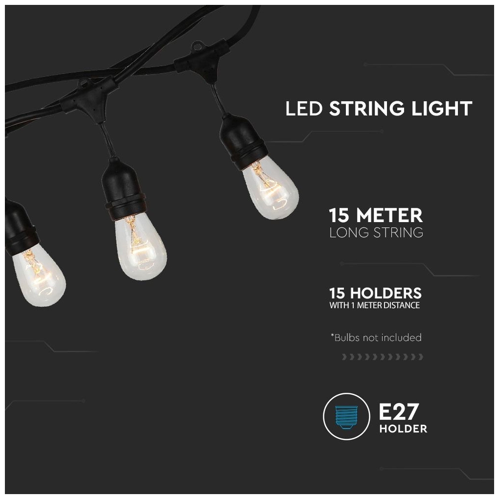 Καλώδιο Γιρλάντας 15m με 15 Ντουί E27 Μαύρο 3673 V-TAC
