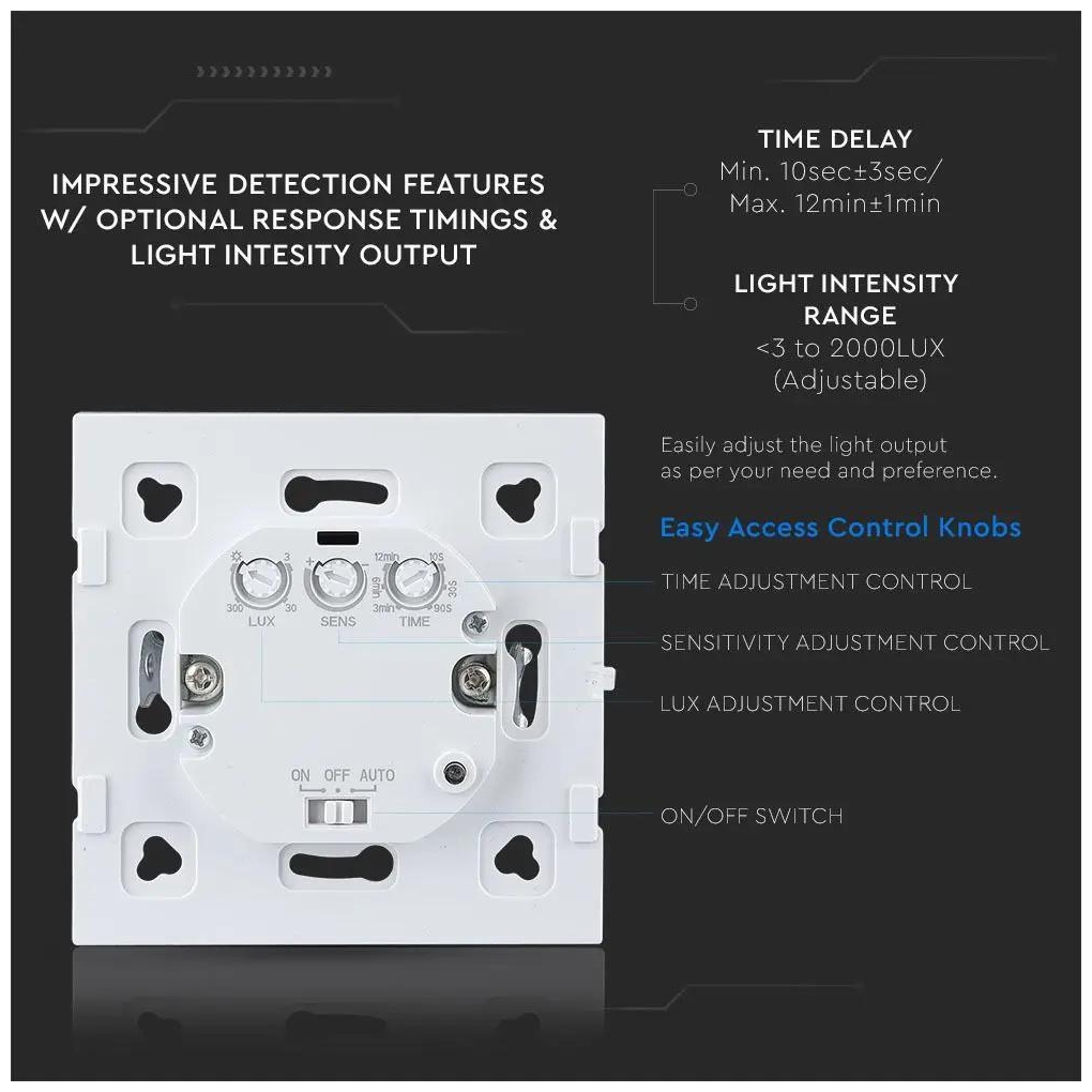 Αισθητήρας Κίνησης Χωνευτός με Μικροκύματα V-TAC-Microwave Sensor Max 300W LED Λευκός