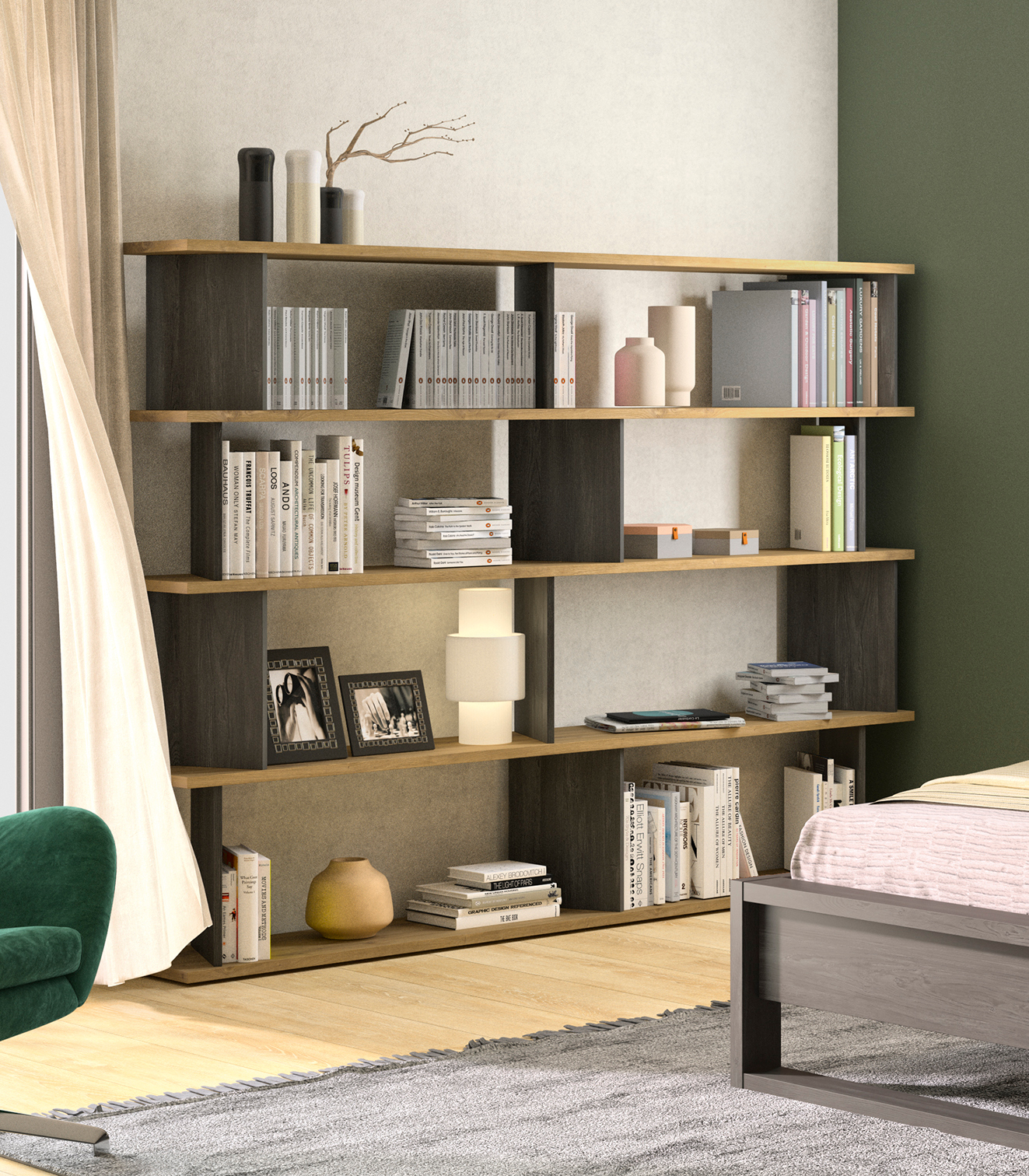 Η βιβλιοθήκη Alana θα σας ενθουσιάσει με το μοντέρνο σχέδιό της. Οι διαστάσεις της είναι 220×32εκ. ( ύψος 163εκ. ) και το χρώμα της ένας υπέροχος συνδυασμός Artisan Oak & Black thread. Η βιβλιοθήκη Alana κατασκευάζεται στη Γαλλία. Συνδυάστε την με τα υπόλοιπα έπιπλα της σειράς Alana.