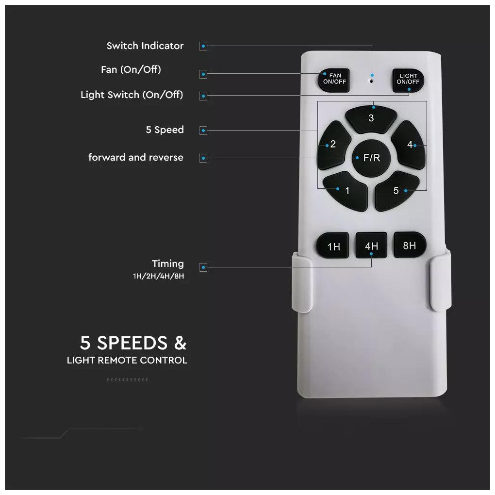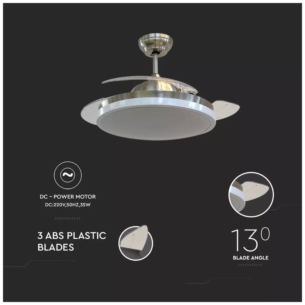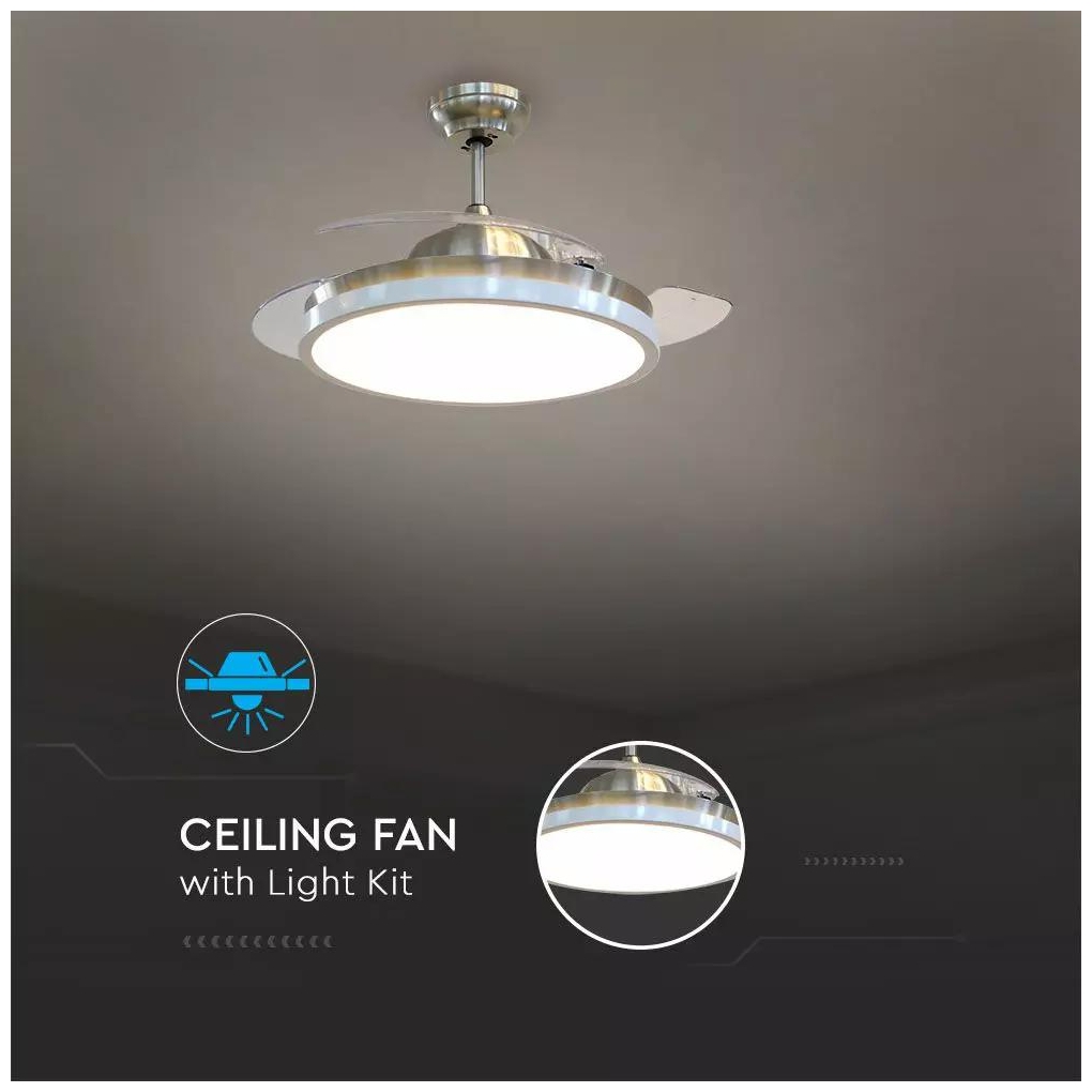 Ανεμιστήρας Οροφής V-TAC 30W με 3 αναδιπλούμενα πτερύγια μαζί με Φωτιστικό Ρυθμιζόμενος 3 σε 1 με RF control