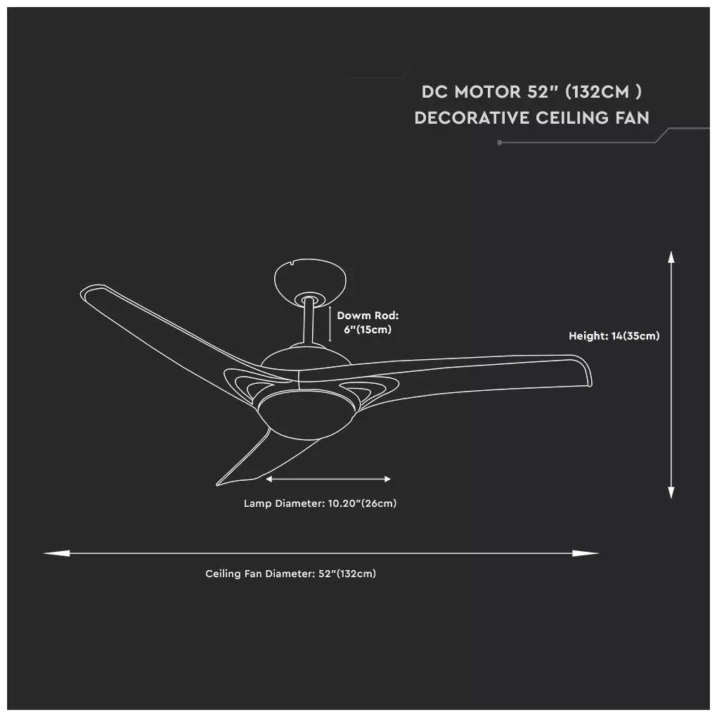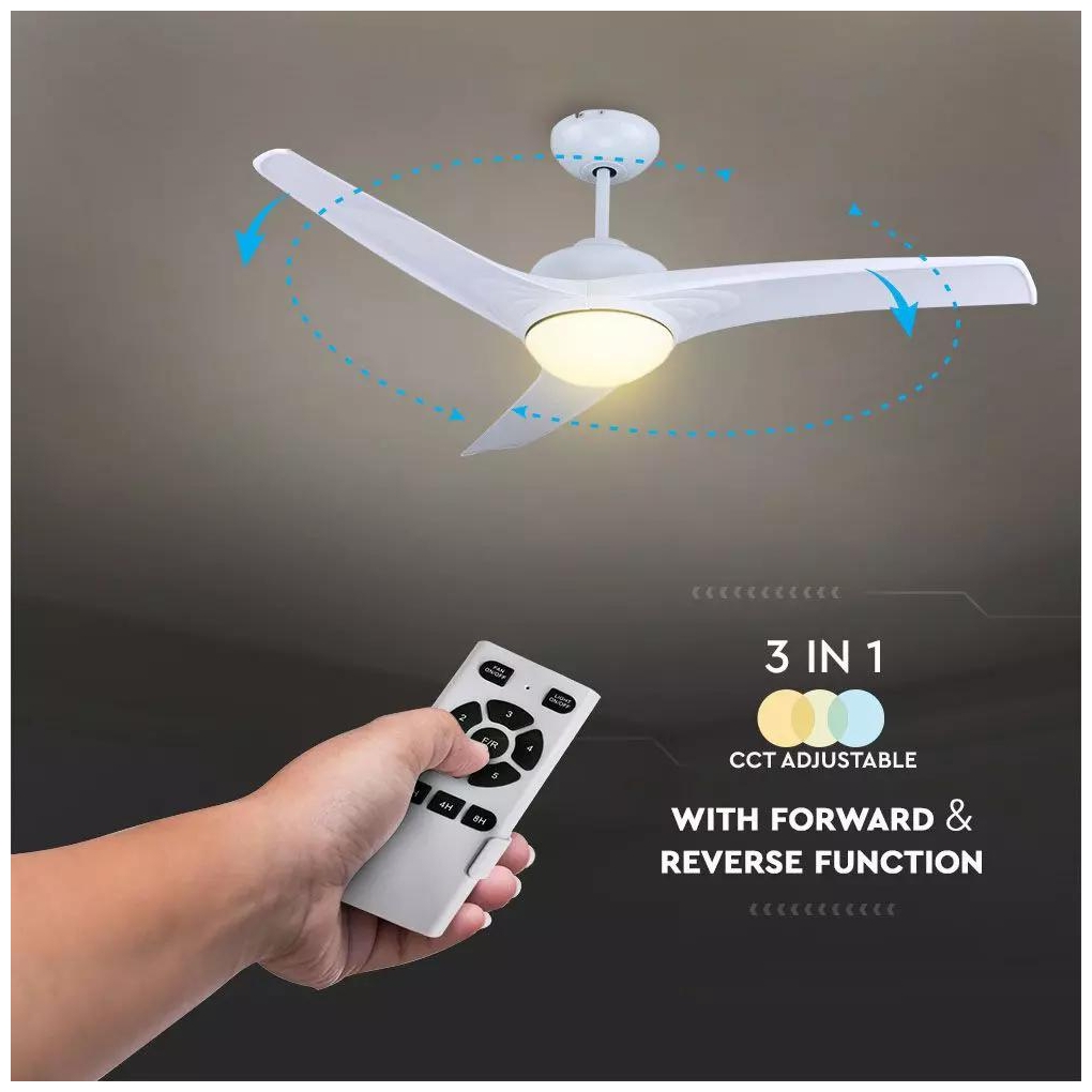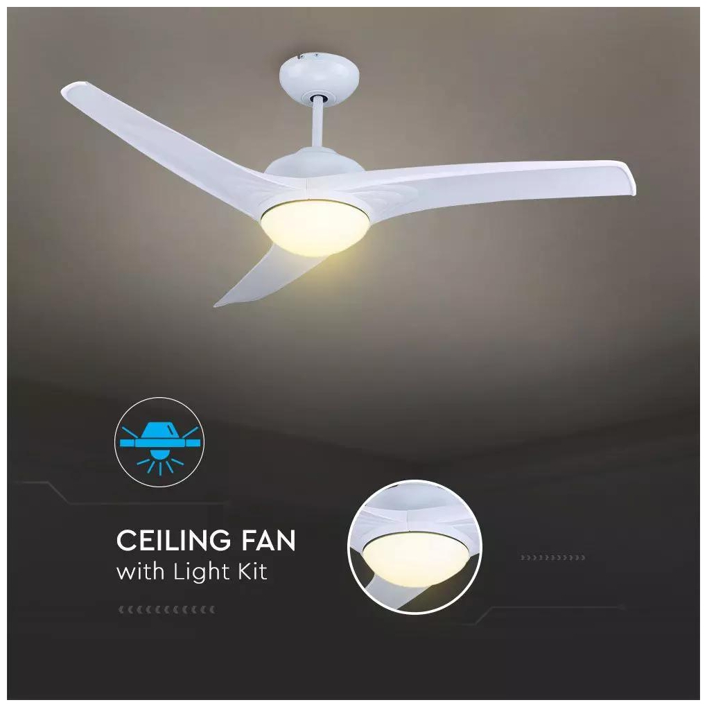 Ανεμιστήρας Οροφής V-TAC 35W Λευκός με 3 πτερύγια μαζί με Φωτιστικό Ρυθμιζόμενος 3 σε 1 με RF control