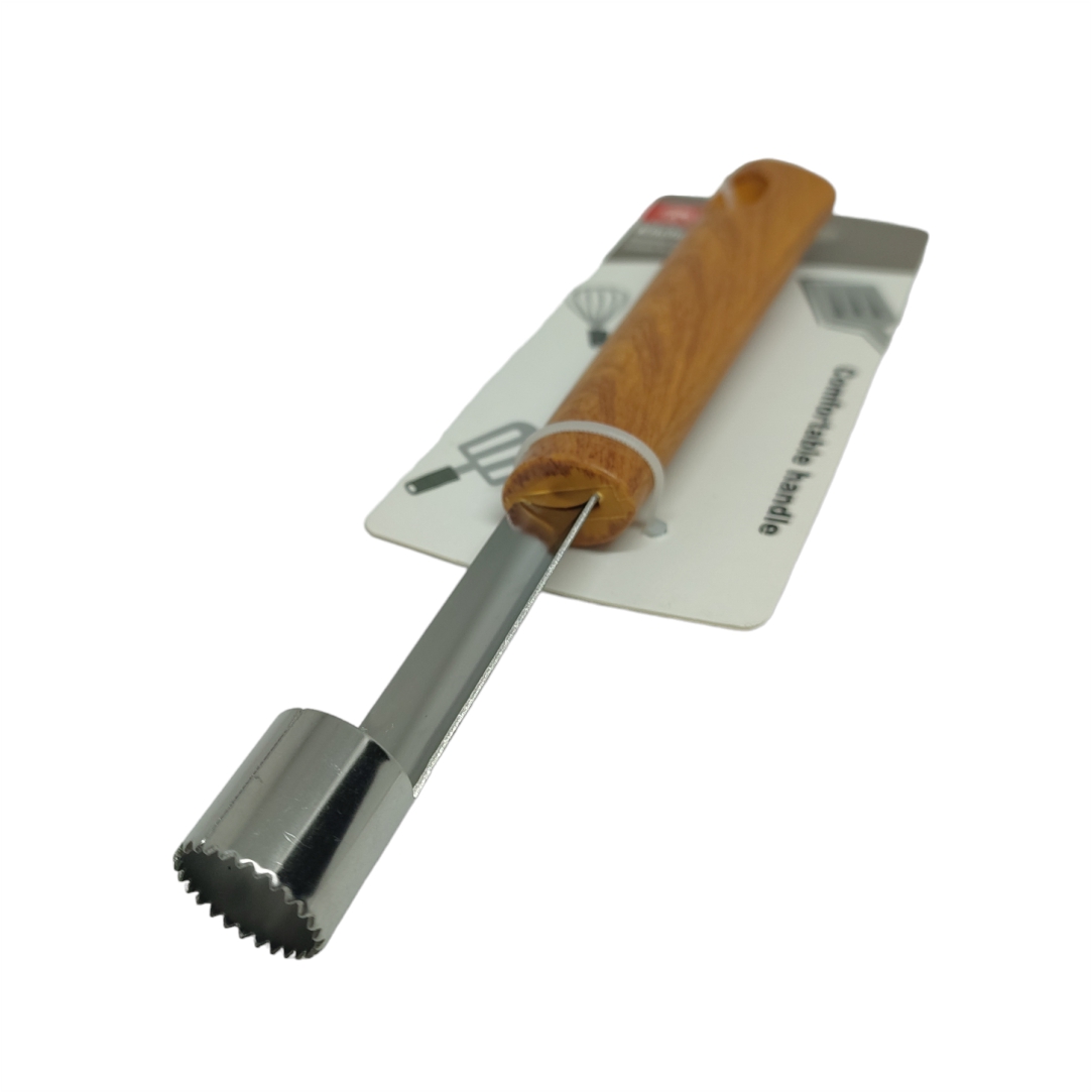 Αποφλοιωτής μεταλλικός με ξύλινη λαβή. Ιδανικό για την κουζίνα σας. Κατάλληλο για την αφαίρεση των κουκουτσιών από τα φρούτα και τα λαχανικά σας. Μέγεθος 20cm.