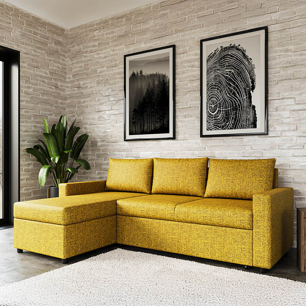 Γωνιακός Καναπές Concept, Ευρωπαϊκής Κατασκευής, εξαιρετικής ποιότητας και υψηλής αντοχής, σε μουσταρδί απόχρωση.