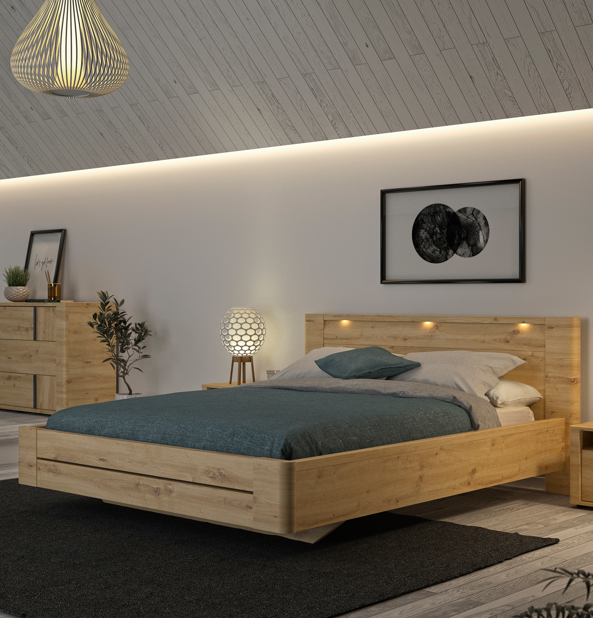 Το διπλό κρεβάτι Confidence με το υπέροχο σχέδιό του θα δώσει μια μοντέρνα πινελιά στο υπνοδωμάτιό σας. Οι διαστάσεις του κρεβατιού είναι 157×210εκ. ( για στρώμα 140×200εκ. ) . Το χρώμα του είναι μια υπέροχη απόχρωση δρυός artisan. Μπορείτε να προσθέσετε στο κεφαλάρι κρυφό φωτισμό led. Το κρεβάτι Confidence είναι γαλλικής κατασκευής. Συνδυάστε το με τα υπόλοιπα έπιπλα της σειράς Confidence.
