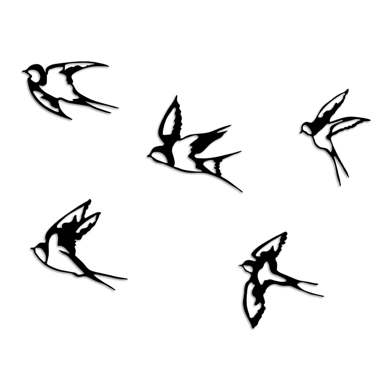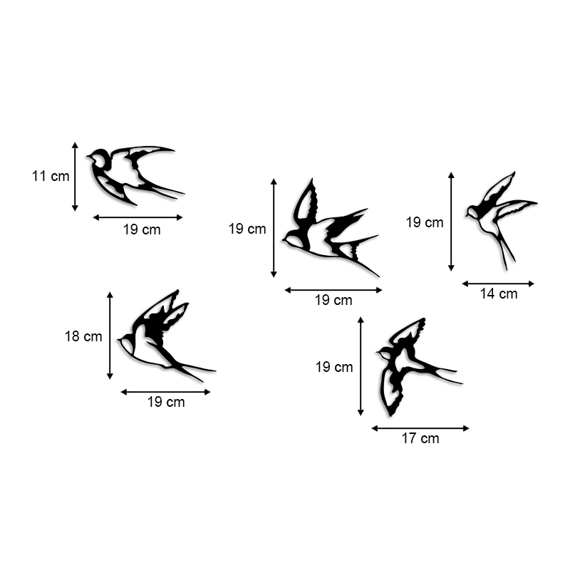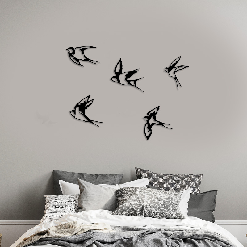 Διακοσμητικό τοίχου Swallows Megapap 5 τμχ μεταλλικό χρώμα μαύρο 19×19εκ.