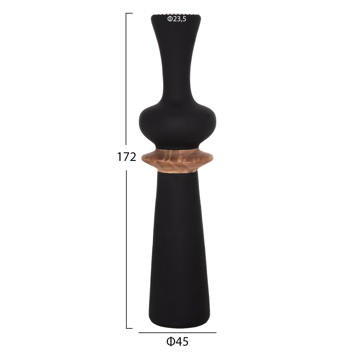 Το χειροποίητο διακοσμητικό βάζο δαπέδου NEBULA είναι ένα πολύ ιδιαίτερο διακοσμητικό στοιχείο για κάθε χώρο. Είναι κατασκευασμένο εξολοκλήρου από Fiber Cement σε ΜΑΥΡΟ χρώμα με λαιμό από ποιοτικό ξύλο Teak, ενώ το ύψος του το καθιστά επιβλητικό στον χώρο. Ιδανικό για πληθώρα χρήσεων και χώρων.