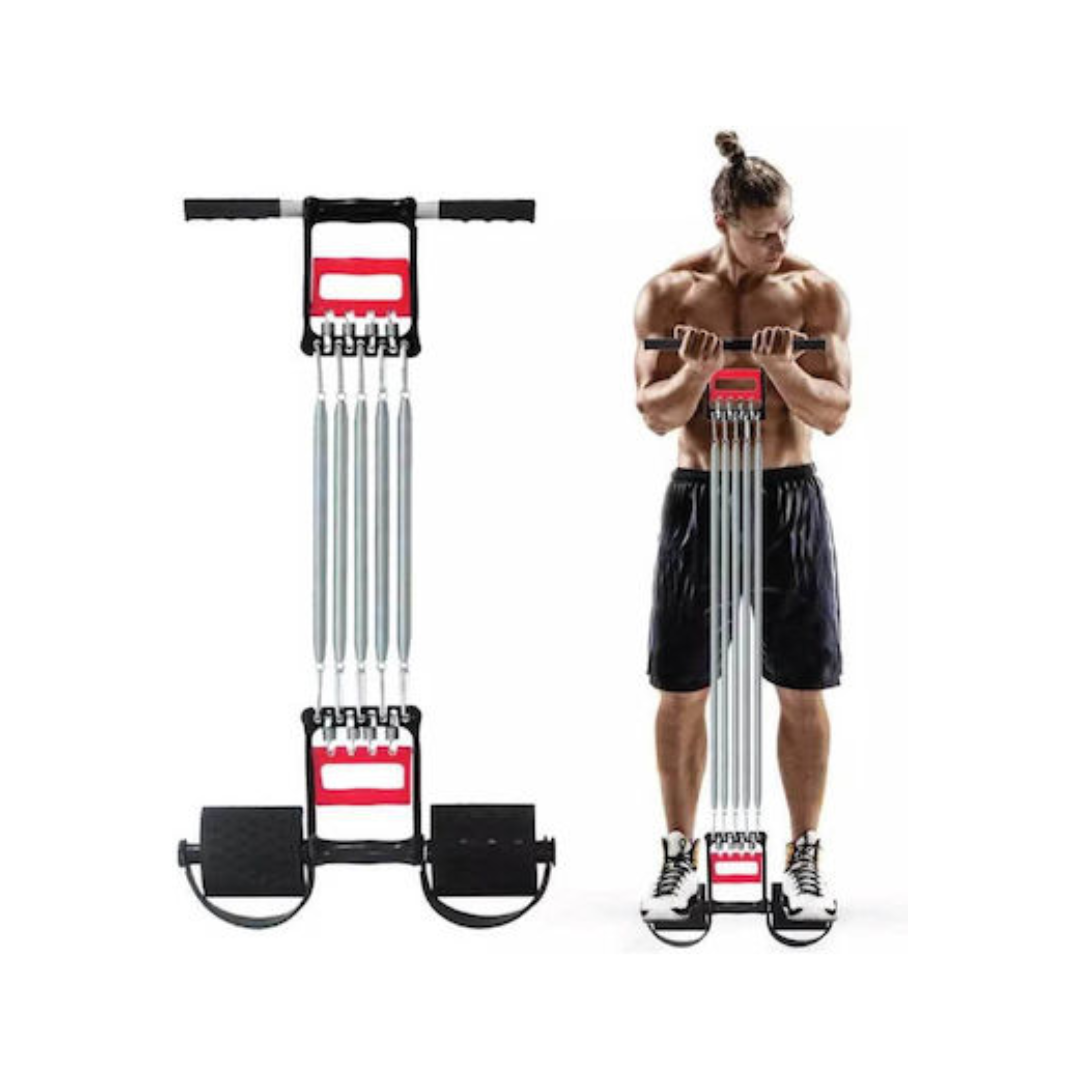 Ελατήριο εκγύμνασης στήθους. Ιδανικό για το κάψιμο λίπους και την γράμμωση των χεριών. Η αντίσταση ρυθμίζεται εύκολα χάρη στα 5 ελατήρια που διαθέτει καλύπτοντας έτσι και τους πιο απαιτητικούς χρήστες. Ακόμα μπορεί να χρησιμοποιηθεί και σαν ταναλάκια για την εκγύμναση των καρπών.