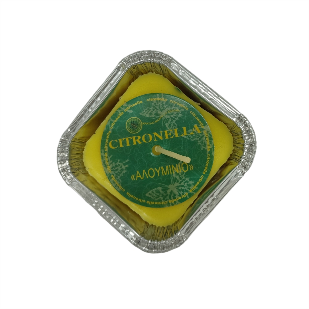 Αντικουνουπικό κερί σιτρονέλας σε αλουμίνιο. Αποτελεί την φυσική λύση κατά των ανεπιθύμητων ζιζανίων, κουνουπιών και άλλων εντόμων καθώς είναι μη τοξικό.