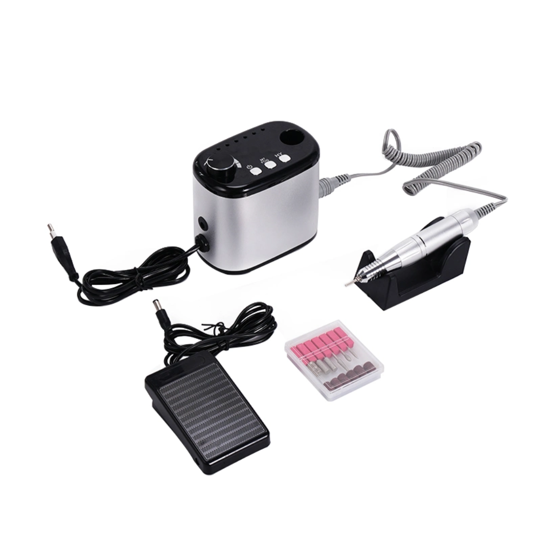 Τροχός νυχιών για μανικιούρ-πεντικιούρ. Διαθέτει 6 διαφορετικές κεφαλές. Αφαιρεί το gel, το βερνίκι νυχιών ή τα πετσάκια. Στροφές 0-45000PRM. Διαθέτει διακόπτη ρύθμισης ταχύτητας. Περιλαμβάνει στυλό. Ισχύς 60W.