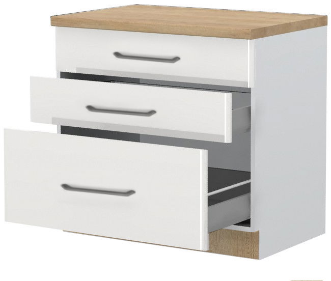 Επιδαπέδιο ντουλάπι Modena R-90-3MBOX, η ιδανική λύση για την αποθήκευση σκευών μαγειρικής και μικροαντικειμένων στον χώρο της κουζίνας. Συνδυάστε με τα υπόλοιπα έπιπλα της σειράς κουζίνας Modena, για να δημιουργήσετε την ιδανική κουζίνας στα μέτρα σας.