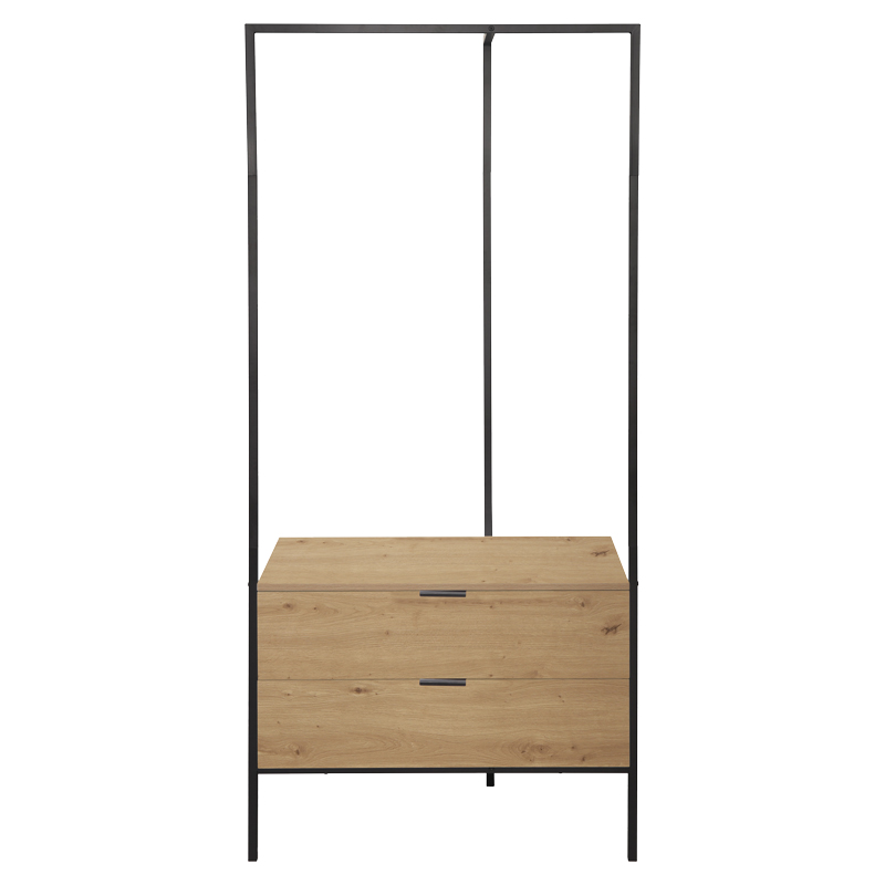 Έπιπλο εισόδου Keila pakoworld μελαμίνη σε φυσική απόχρωση και μαύρο μέταλλο 85x45x190εκ