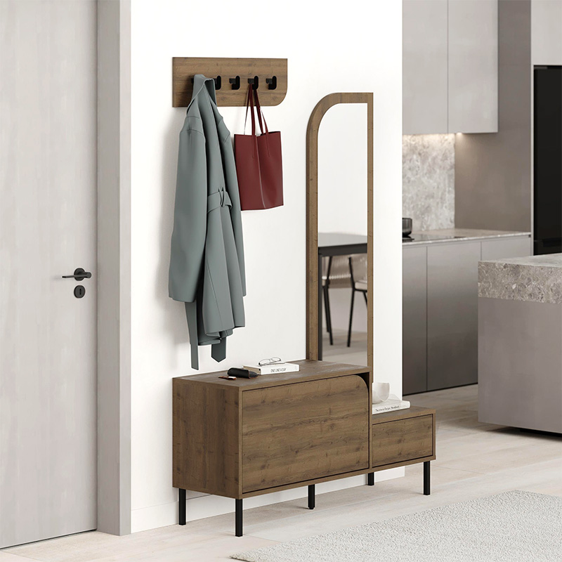Έπιπλο εισόδου Mila Megapap με κρεμάστρα χρώμα ανοιχτό καρυδί 120x37x171,6εκ.