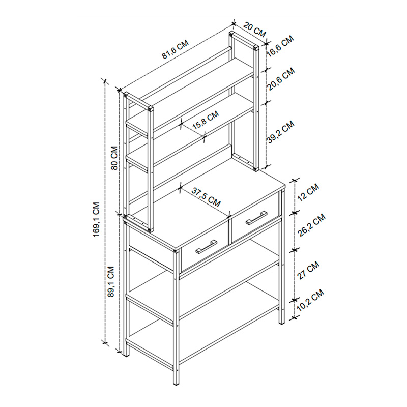 Έπιπλο κουζίνας Printo Megapap μεταλλικό – μελαμίνης χρώμα μαύρο – καπνιστή καρυδιά 81,6×37,5×169,1εκ.