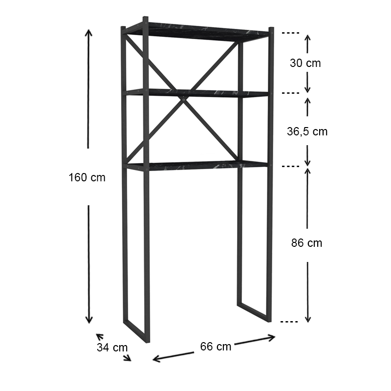 Έπιπλο πλυντηρίου Mindy Megapap μεταλλικό – μελαμίνης χρώμα μαύρο εφέ μαρμάρου 66x34x160εκ.