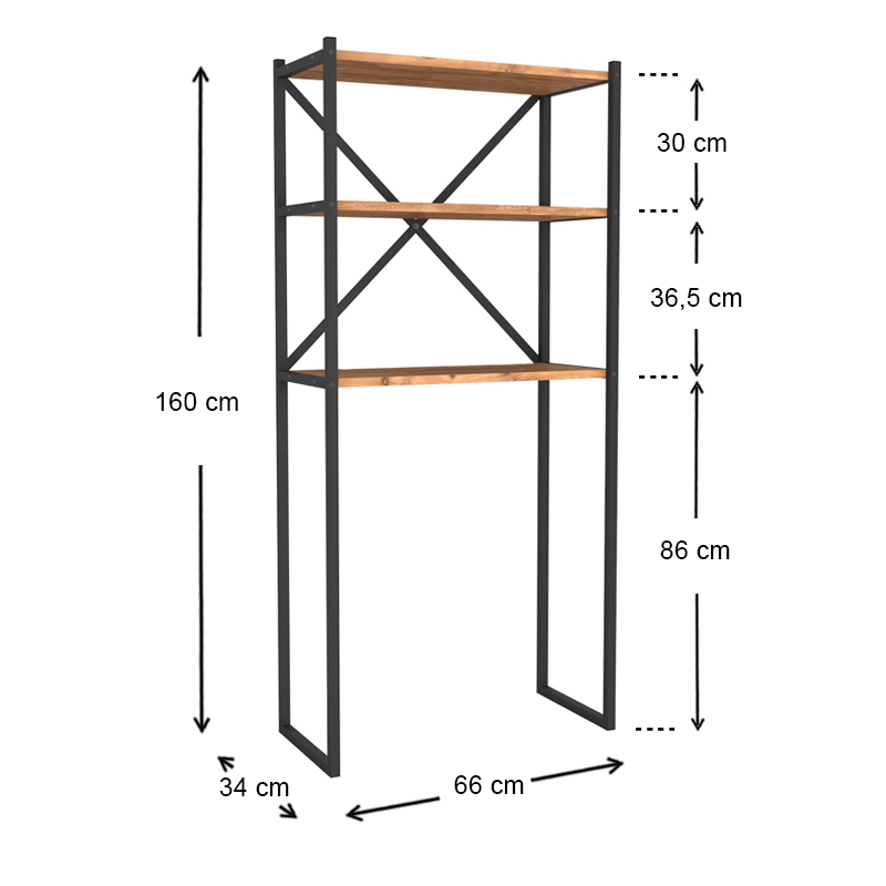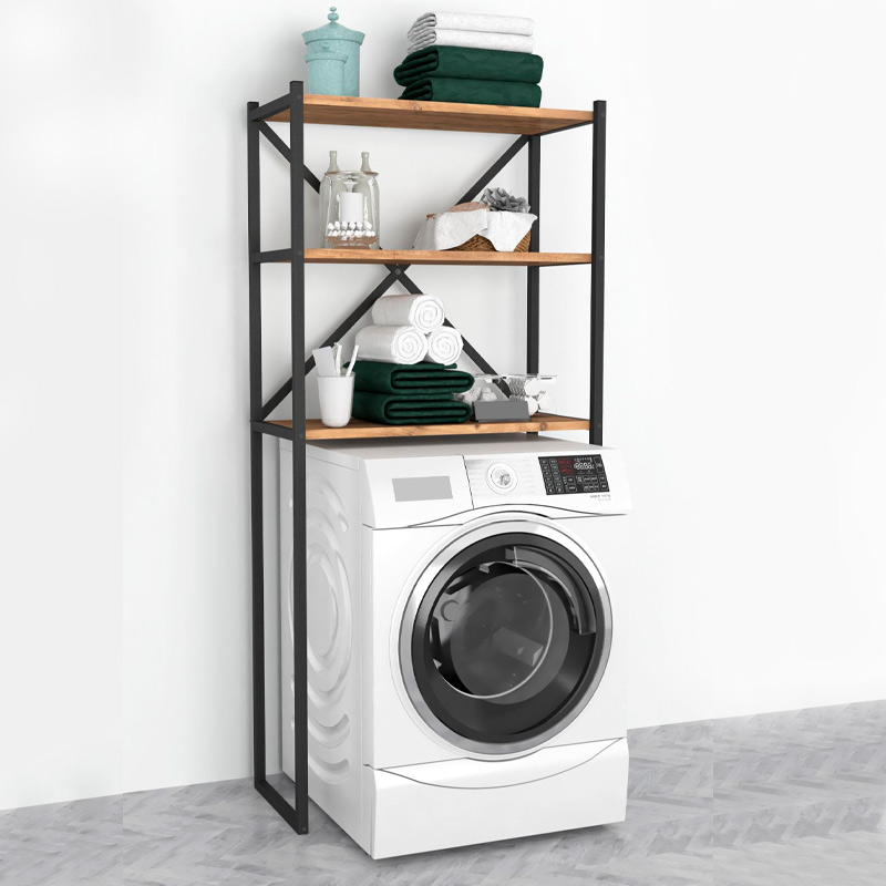 Έπιπλο πλυντηρίου Mindy Megapap μεταλλικό – μελαμίνης χρώμα μαύρο – pine oak 66x34x160εκ.