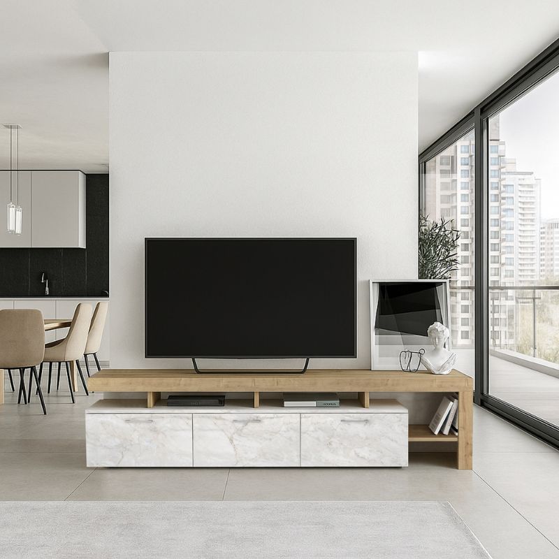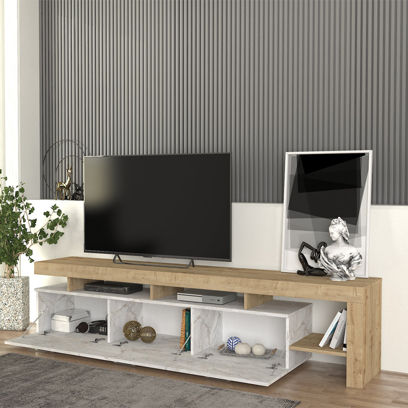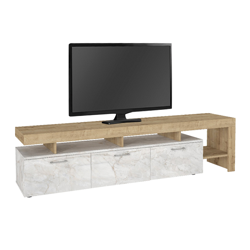 Έπιπλο τηλεόρασης Acnes Megapap χρώμα λευκό εφέ μαρμάρου – sapphire oak 220x40x52εκ.