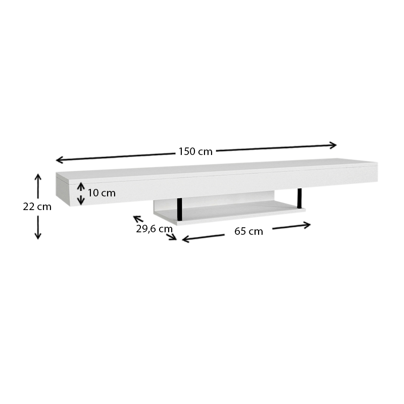 Έπιπλο τηλεόρασης επιτοίχιο Albares Megapap από μελαμίνη με LED χρώμα λευκό 150×29,6×22εκ.