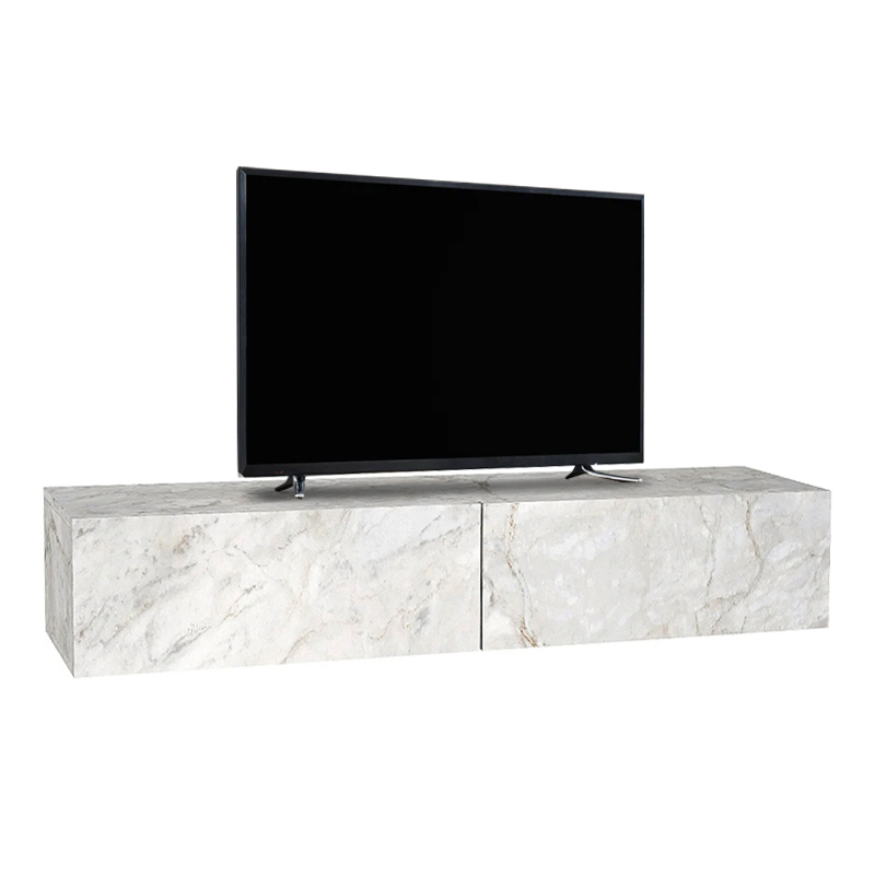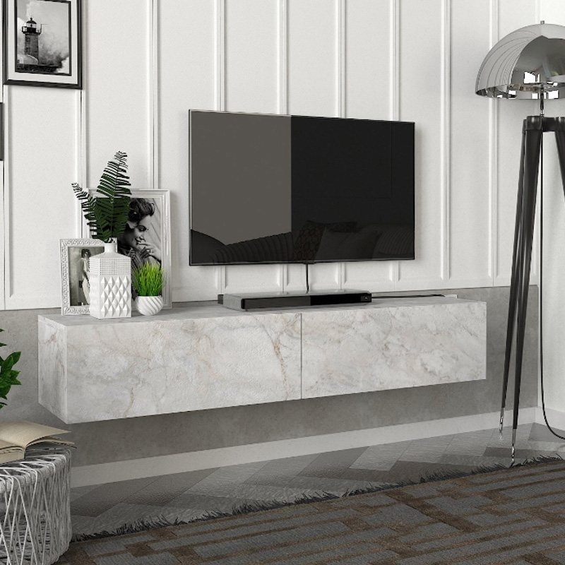 Έπιπλο τηλεόρασης επιτοίχιο Aristo Megapap με LED χρώμα λευκό εφέ μαρμάρου 135×31,6×25εκ.
