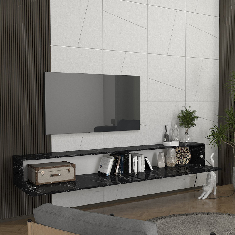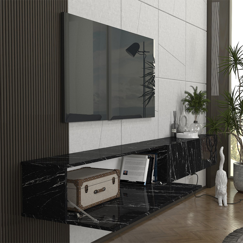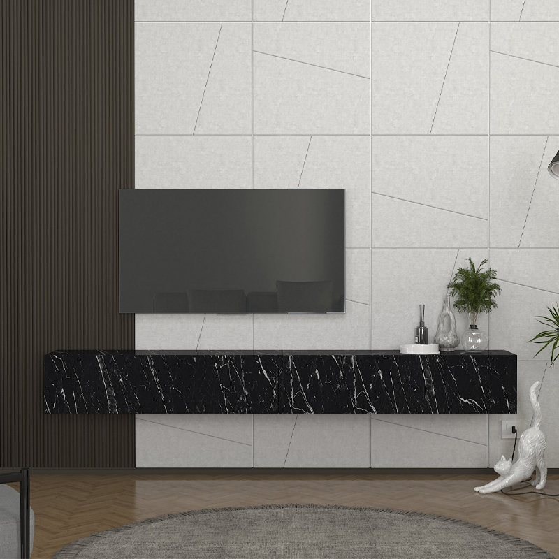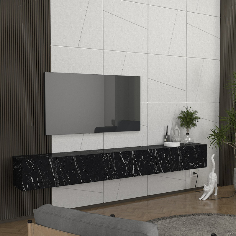 Έπιπλο τηλεόρασης επιτοίχιο Espanse Megapap χρώμα μαύρο εφέ μαρμάρου 241,8×31,7×30εκ.