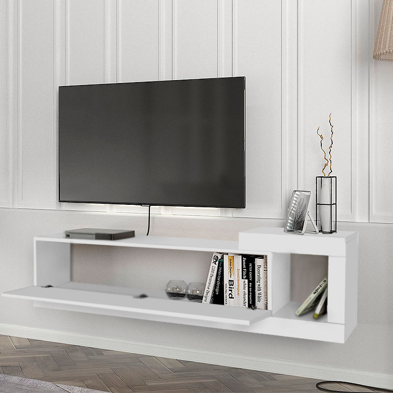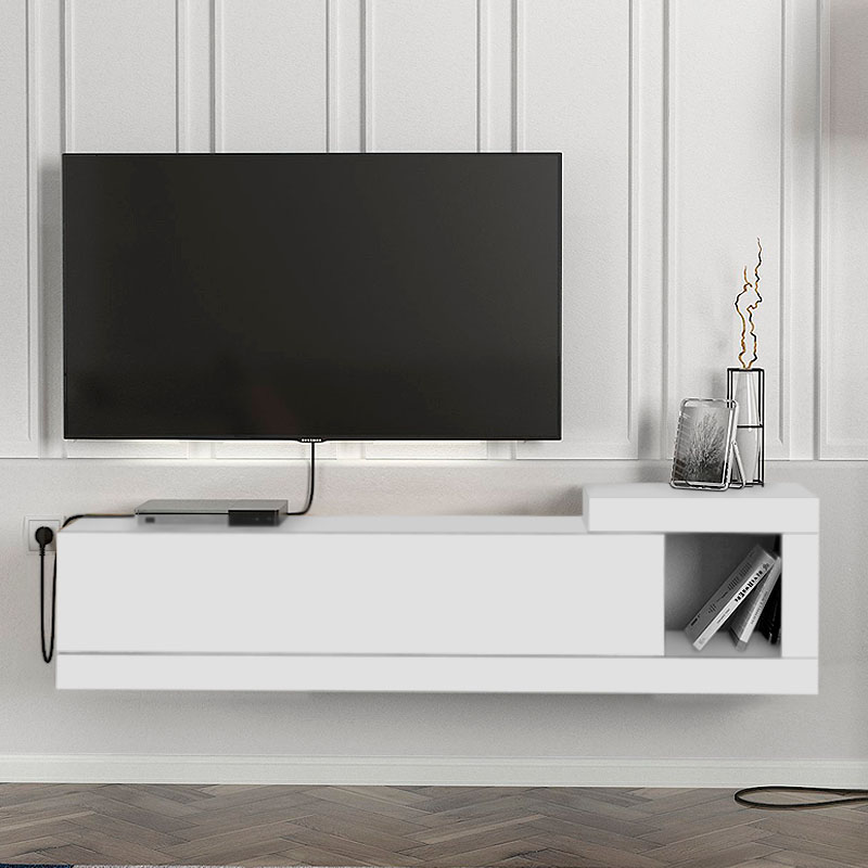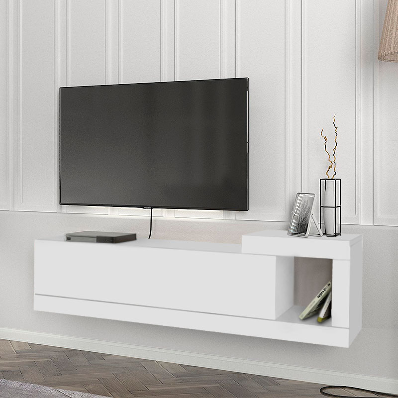 Έπιπλο τηλεόρασης επιτοίχιο Volare Megapap από μελαμίνη χρώμα λευκό 150×29,6×38,6εκ.