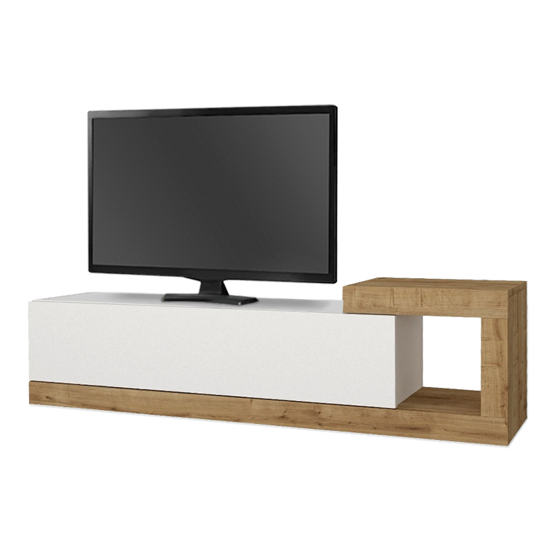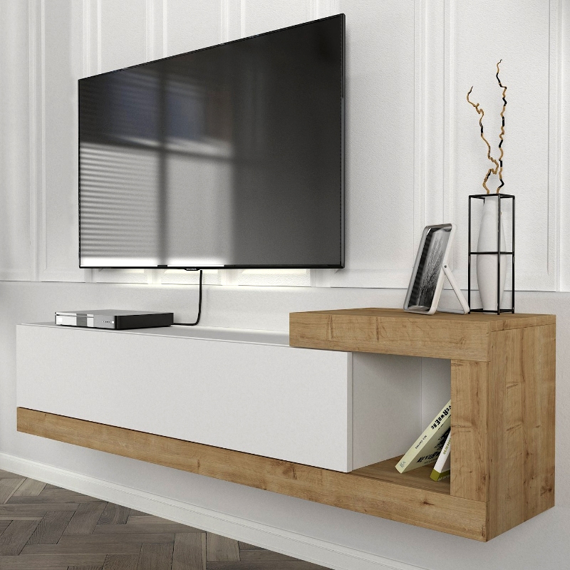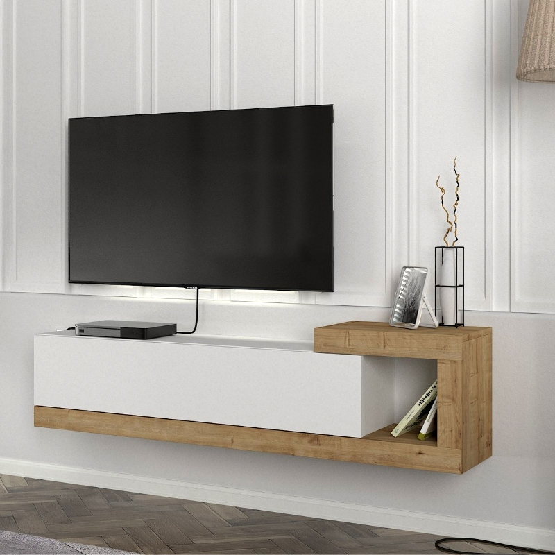 Έπιπλο τηλεόρασης επιτοίχιο Volare Megapap χρώμα λευκό – sapphire oak 150×29,6×38,6εκ.