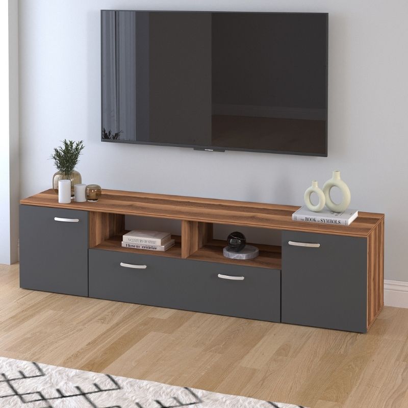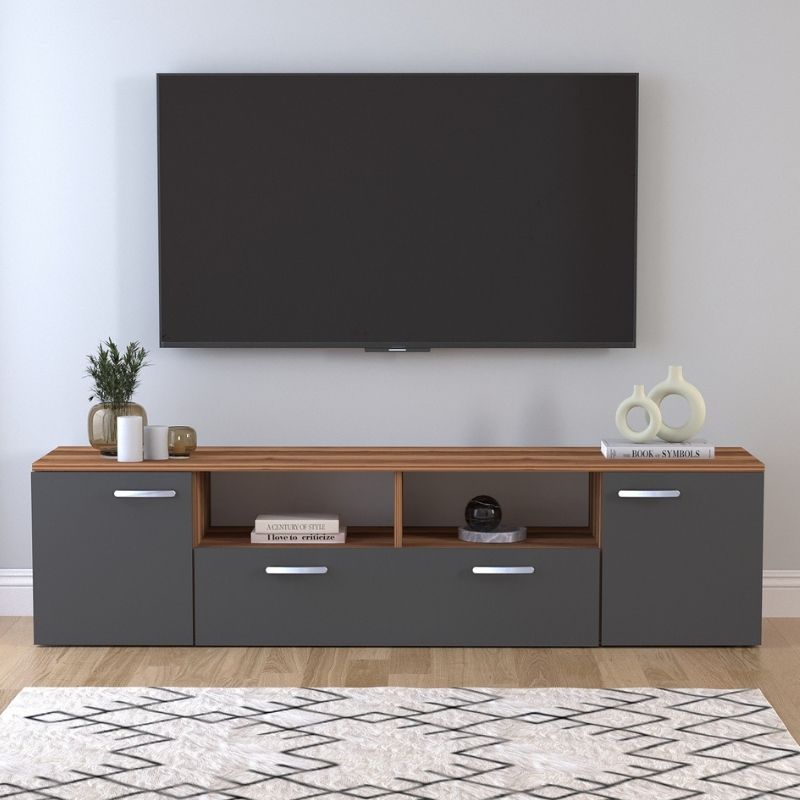 Έπιπλο τηλεόρασης Girit Megapap χρώμα καρυδί – ανθρακί 181,3x41x46,2εκ.