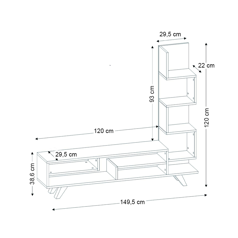 Έπιπλο τηλεόρασης Granada Megapap από μελαμίνη χρώμα λευκό – cordoba 149,5×29,5×120εκ.