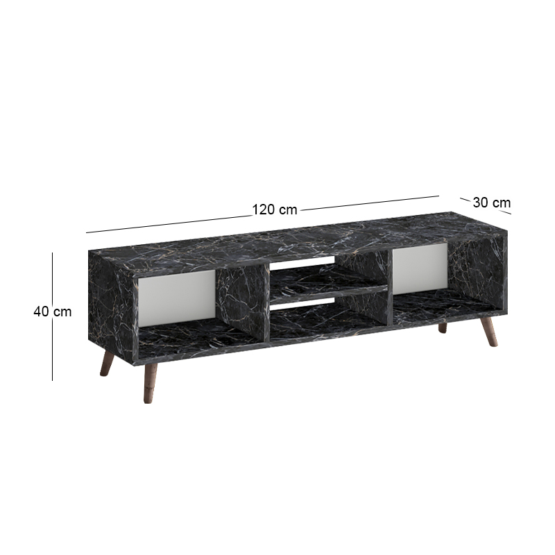 Έπιπλο τηλεόρασης Loren Megapap χρώμα μαύρο εφέ μαρμάρου 120x30x40εκ.