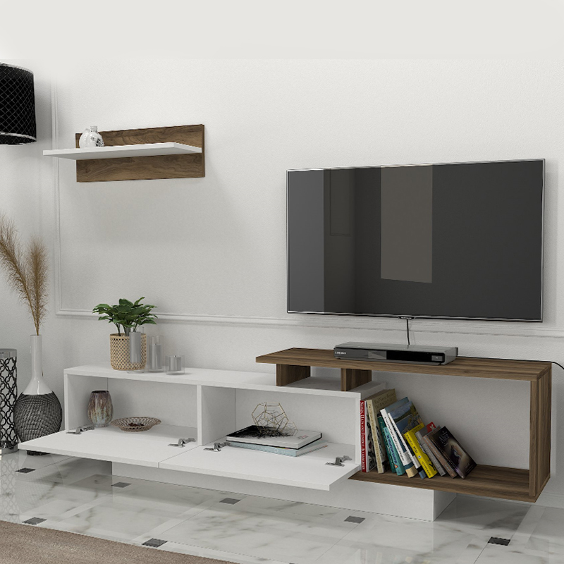 Έπιπλο τηλεόρασης Novara Megapap από μελαμίνη χρώμα λευκό – καρυδί 180×29,6×45εκ.