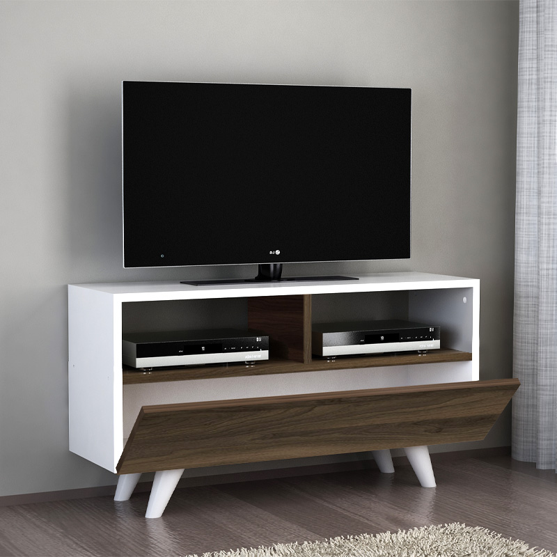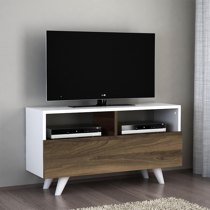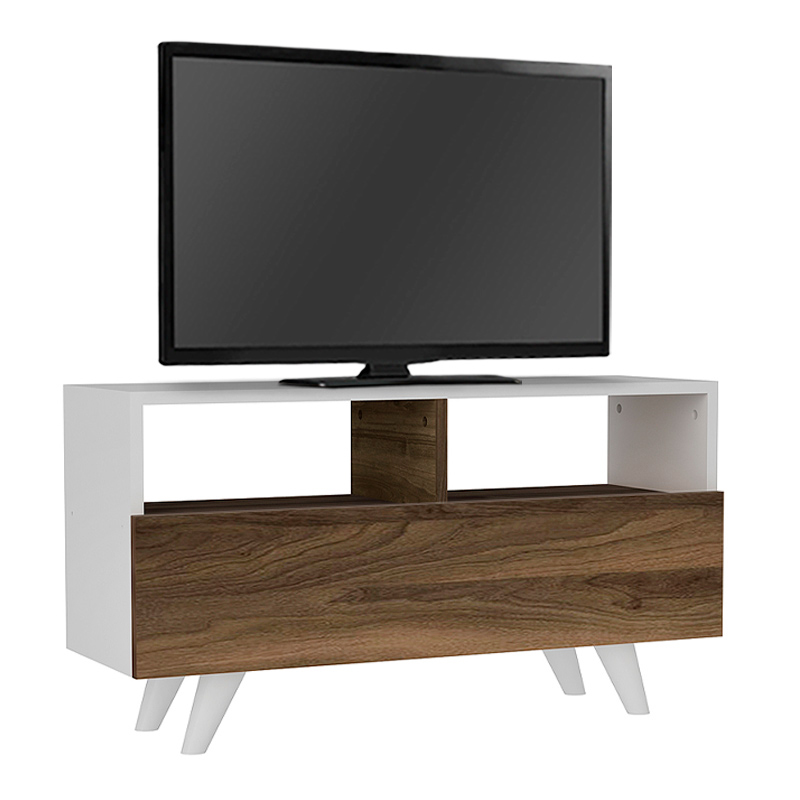 Έπιπλο τηλεόρασης Novela Megapap από μελαμίνη χρώμα λευκό – καρυδί 90×29,5×50εκ.