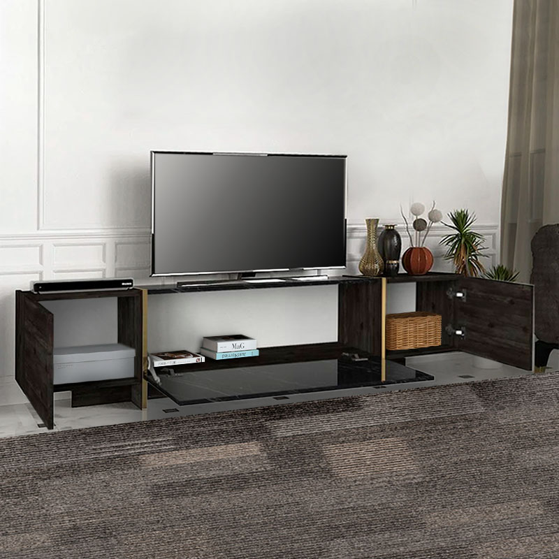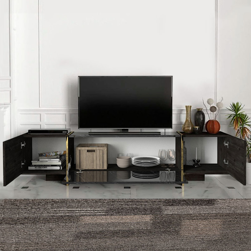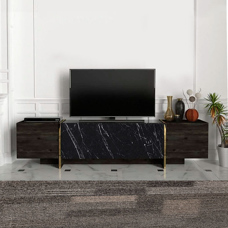 Έπιπλο τηλεόρασης Veyron Megapap από μελαμίνη χρώμα μαύρο rebab – μαύρο εφέ μαρμάρου 180×32,3×45εκ.
