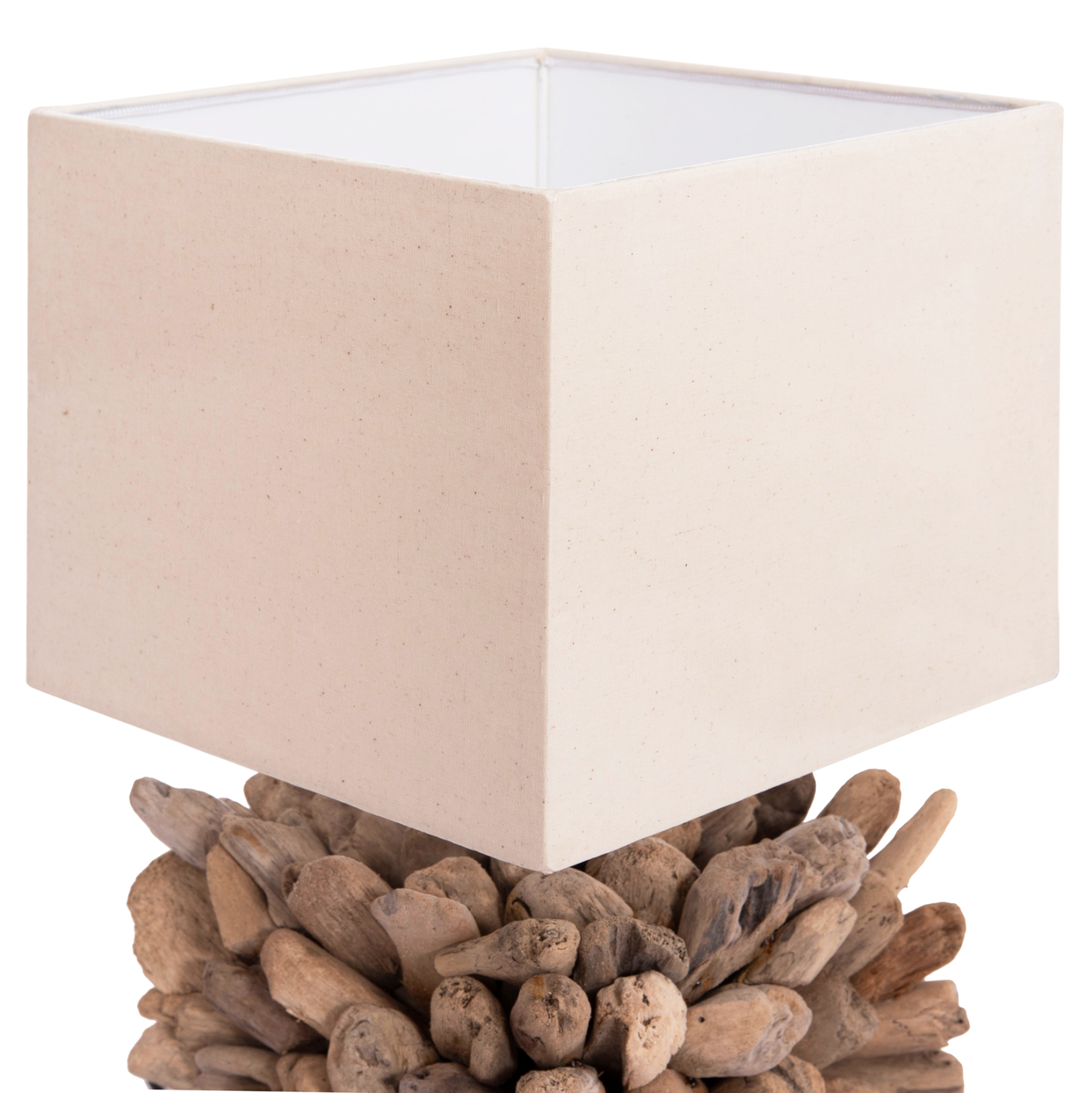 Φωτίστε και ταυτόχρονα διακοσμήστε τον χώρο που επιθυμείτε με το ιδιαίτερο επιτραπέζιο φωτιστικό TWIGGY σε τετράγωνη υλοποίηση (σχήμα κύβου). Η κολώνα αποτελείται από κομμάτια driftwood σε ΦΥΣΙΚΟ χρώμα που καλύπτουν την μεταλλική μπάρα η οποία υποστηρίζει το ΛΕΥΚΟ καπέλο που είναι κατασκευασμένο από βαμβακερό ύφασμα με επικάλυψη PVC. To φωτιστικό μπορεί να χρησιμοποιηθεί σε καφέ, εστιατόρια, ξενοδοχεία, ακόμα και στο σπίτι, δίνοντας μια αίσθηση πολυτέλειας και ρουστίκ οικειότητας.