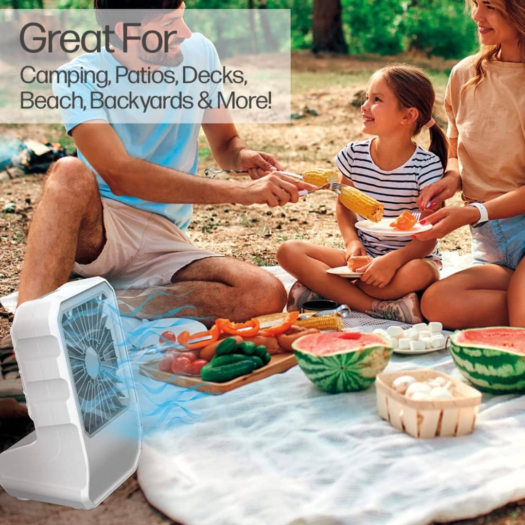 Ανεμιστήρας ιδανικός για να δροσίσετε το χώρο σας. Λειτουργεί με καλώδιο USB. Με 4 ρυθμιζόμενες ταχύτητες ανεμιστήρα. Διαστάσεις 40x28cm. Φορητό, επαναφορτιζόμενο. Διάρκεια 6 ώρες.