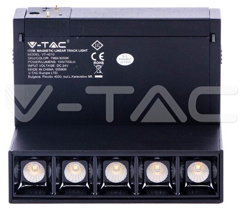 Φωτιστικό 5πλό Μαγνητικό Ράγας V-TAC Track Light 5x2W LED 30° 24V Μαύρο Θερμό Λευκό 3000Κ 7962