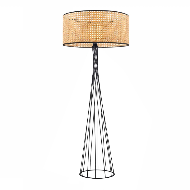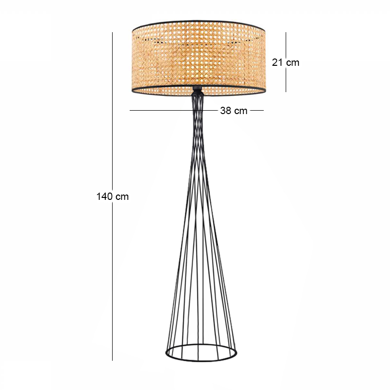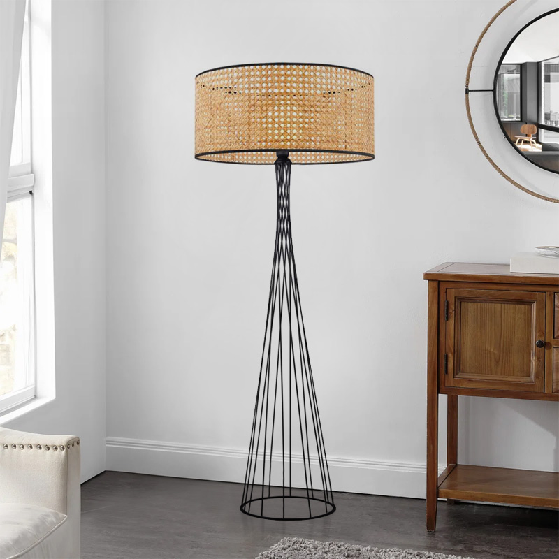 Φωτιστικό δαπέδου Solin Megapap E27 μεταλλικό – ρατάν χρώμα μαύρο – φυσικό Ø38×140εκ.