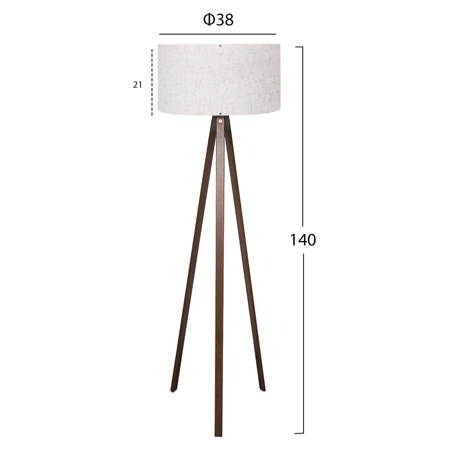 Φωτιστικό δαπέδου με τρίποδο από 100% MDF σε καρυδί χρώμα.