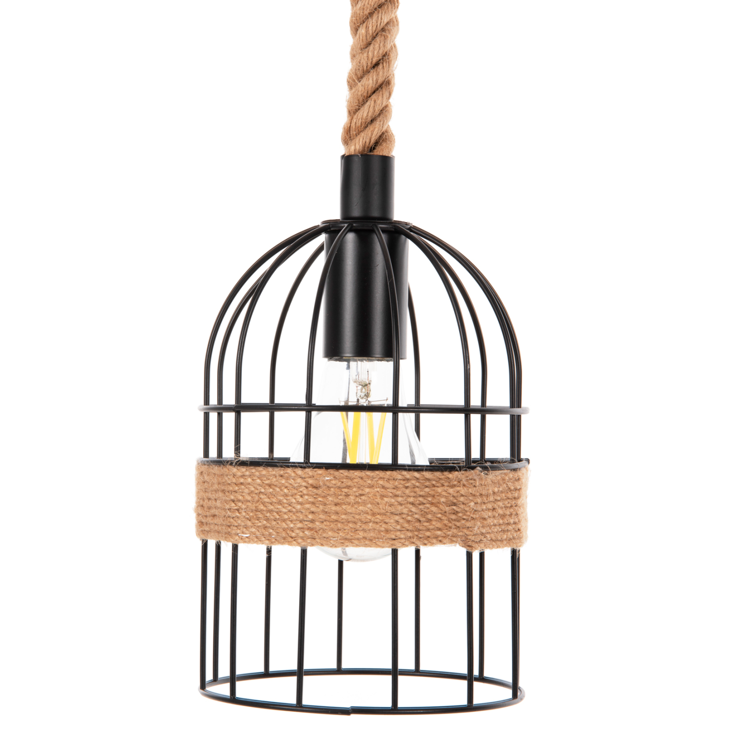 Αφήστε το φως να απλωθεί στον χώρο με ένα πρωτότυπο και φινετσάτο κρεμαστό οροφής, ολοκληρώνοντας την διακόσμησή σας. Το 3-φωτο αυτό, κρέμεται από μια μεταλλική βάση στην οροφή με αλυσίδες, οι οποίες κρατάνε μια μαύρη μεταλλική σωλήνα. Από αυτή την σωλήνα κρέμονται με σχοινί οι 3 λάμπες σε όμορφα καπελάκια.