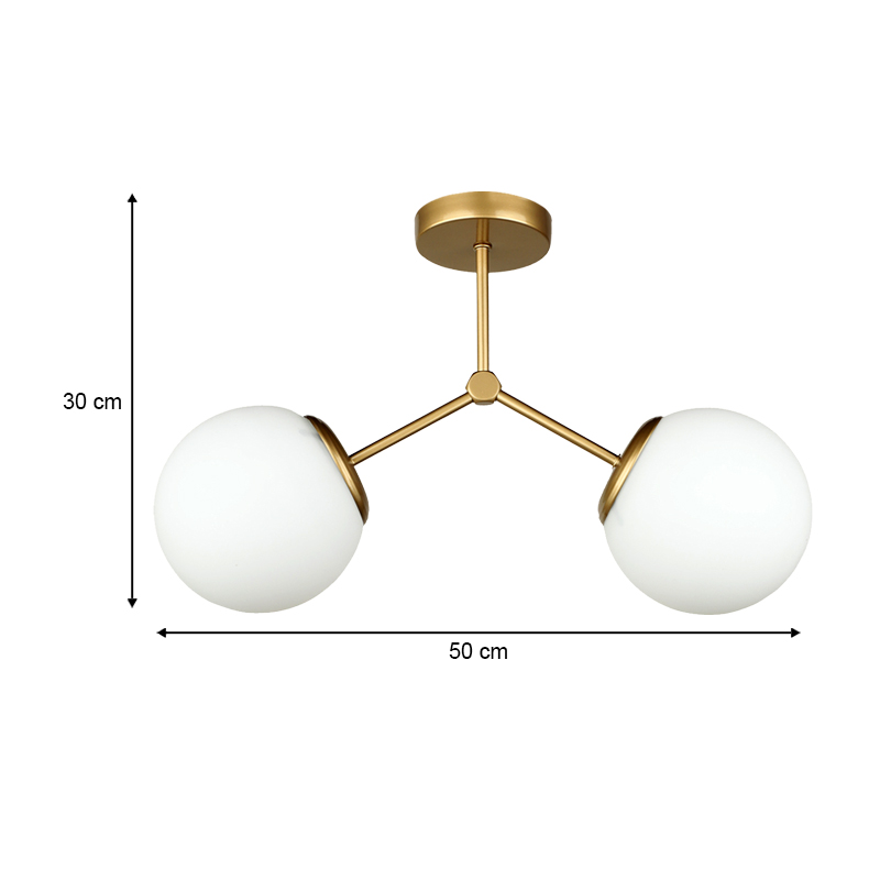 Φωτιστικό οροφής Alison Megapap Ε27 μεταλλικό – γυάλινο δίφωτο χρώμα χρυσό Ø50×30εκ.