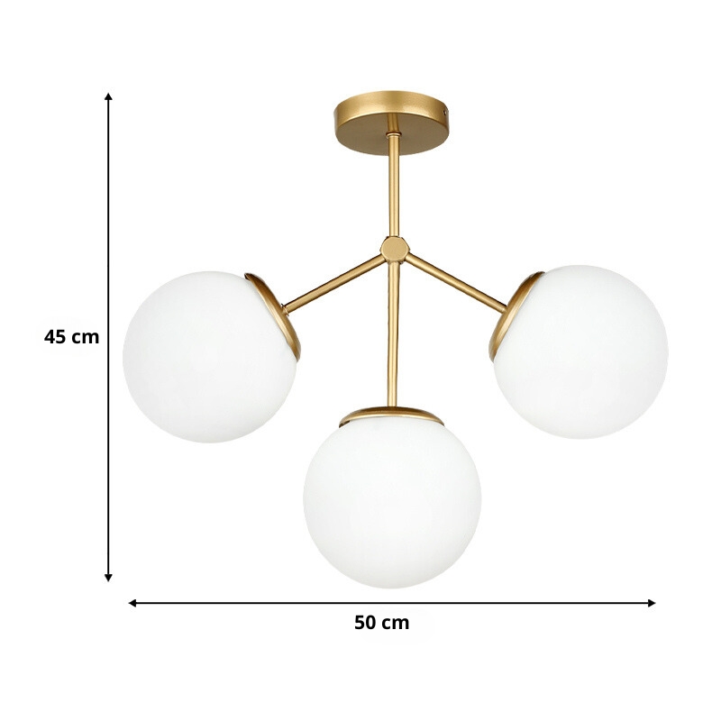 Φωτιστικό οροφής Alison Megapap Ε27 μεταλλικό – γυάλινο τρίφωτο χρώμα χρυσό Ø50×45εκ.