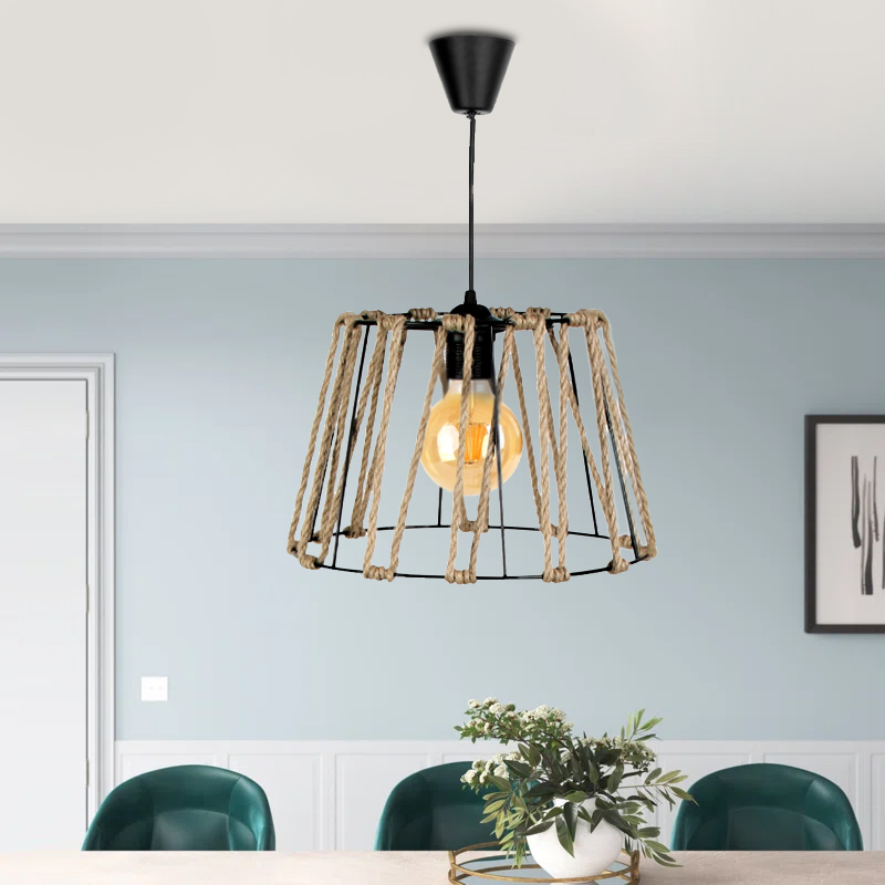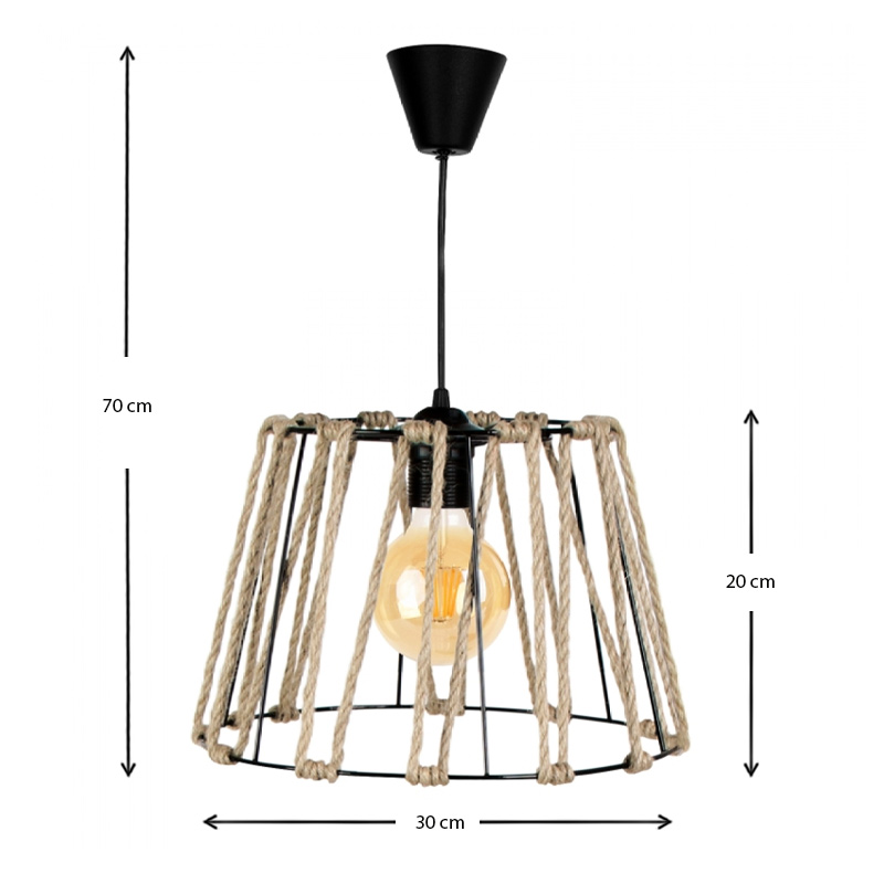 Φωτιστικό οροφής Andrew Megapap μέταλλο/σχοινί μονόφωτο χρώμα μαύρο φυσικό 30x30x20εκ.