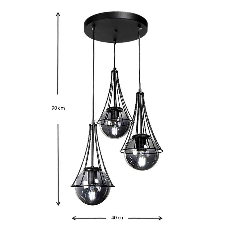 Φωτιστικό οροφής Chavi Megapap E27 μεταλλικό τρίφωτο χρωμα μαύρο 40x40x90εκ.