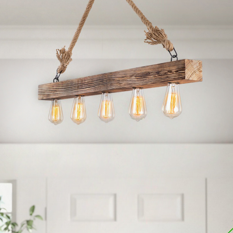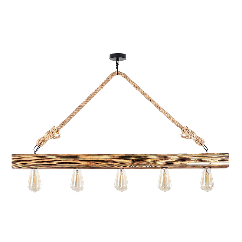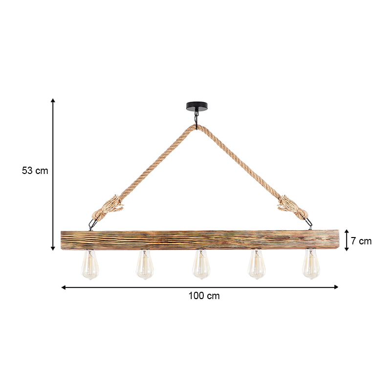 Φωτιστικό οροφής Erebos Megapap E27 ξύλο – σχοινί πεντάφωτο χρώμα φυσικό 100x7x53εκ.