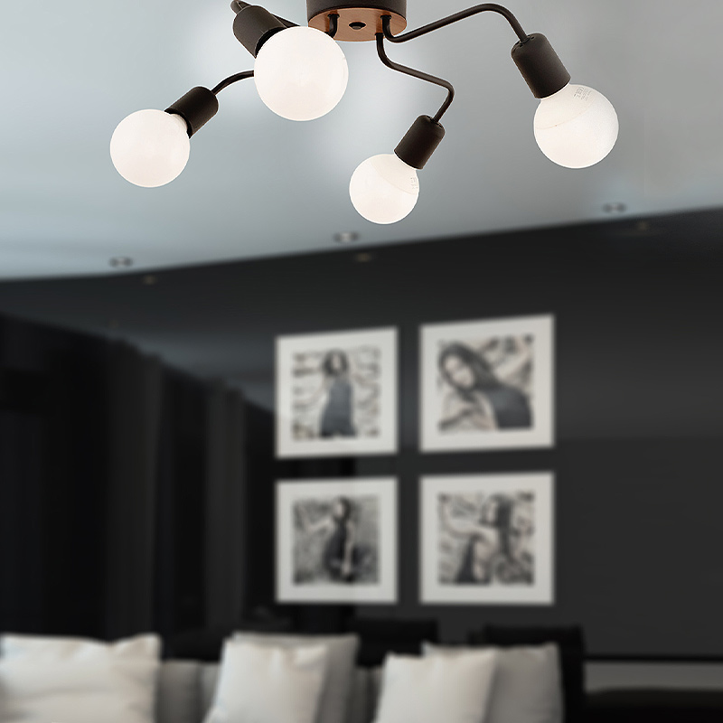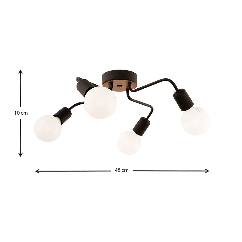 Φωτιστικό οροφής Horus Megapap E27 μεταλλικό τετράφωτο χρώμα μαύρο 48x48x10εκ.