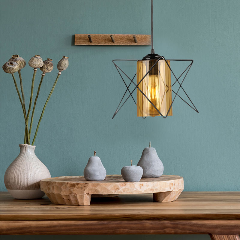 Φωτιστικό οροφής Indra Megapap E27 μεταλλικό μονόφωτο χρώμα μαύρο 17x17x50εκ.