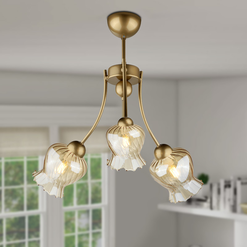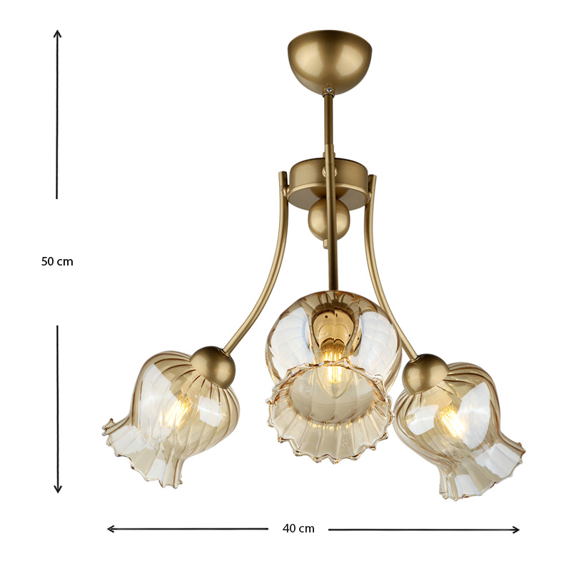 Φωτιστικό οροφής Kobe Megapap E27 μεταλλικό τρίφωτο χρώμα χρυσό 40x40x50εκ.